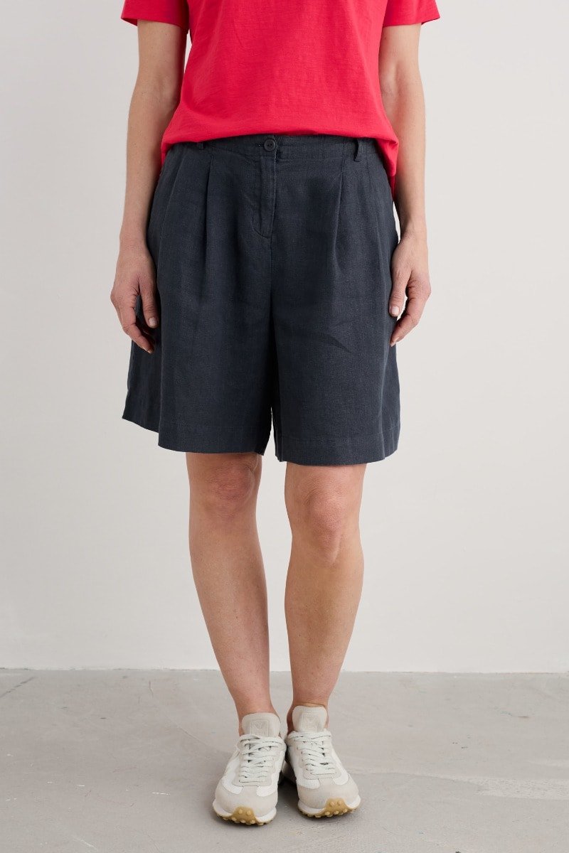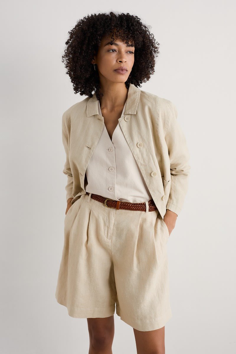 Wonderfully mellow summer shorts with a fitted waist and floaty silhouette, made from tactile linen to keep you cool on summer days. They will become softer and smoother with every wash and wear, with the soft, garment-dyed colours developing unique, sun kissed highs and lows. Finished with a zip fly, comfy elasticated back waist and concealed side pockets.