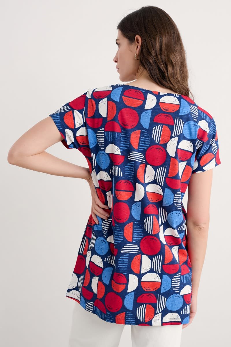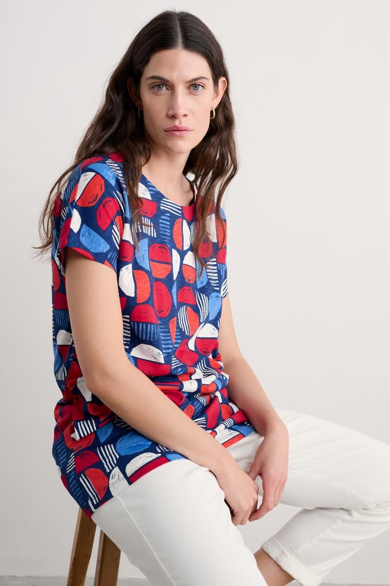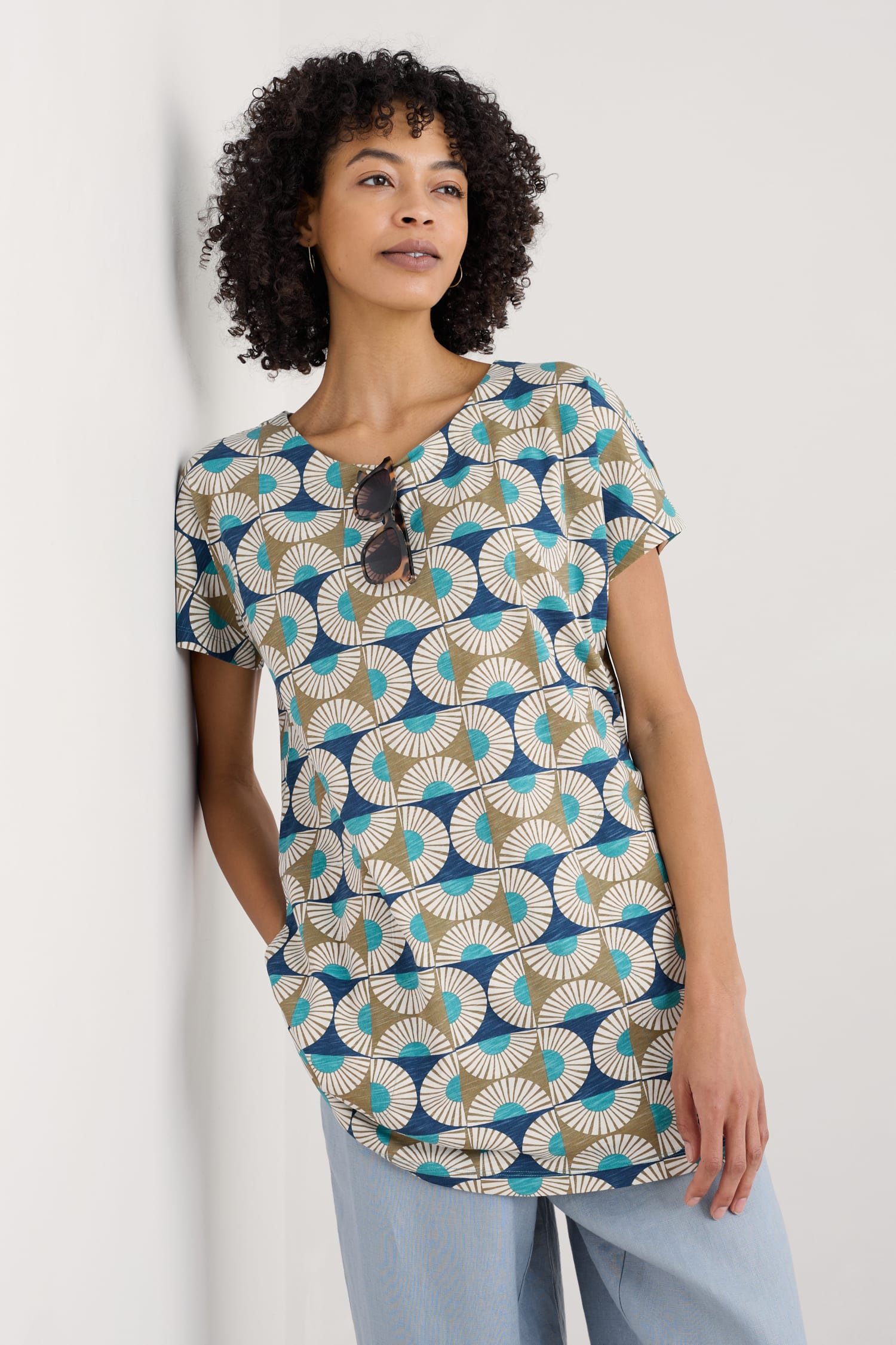 Organic cotton jersey tunic with handy pockets. Choose from a delicate, deco-style floral print or nautical plain. We’ll wear ours over soft jersey leggings for weekday comfort, and under a light raincoat for weekend strolls and picnic lunches by the sea.