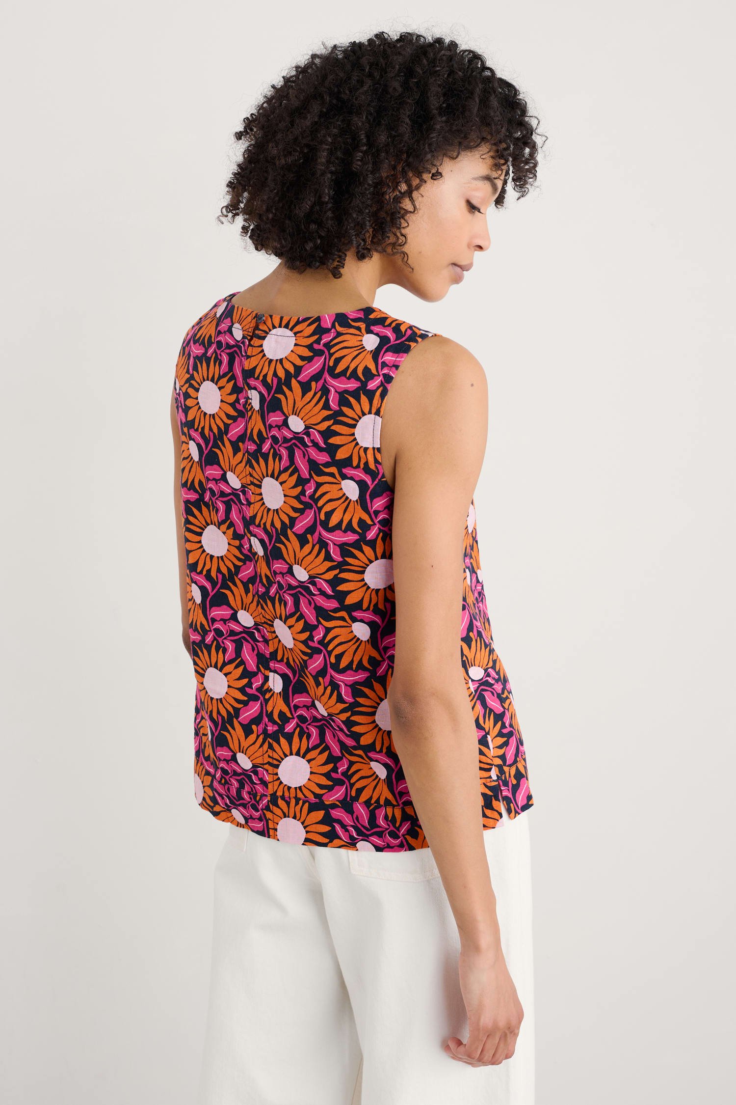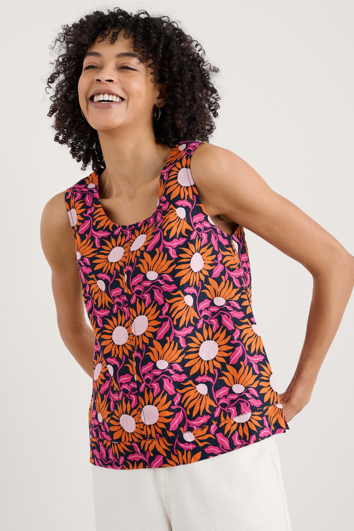 A simple, versatile style for summer adventures, whether you’re exploring the shoreline or gallery-hopping in the city. Made from soft, breathable linen printed with joyful summer blooms.