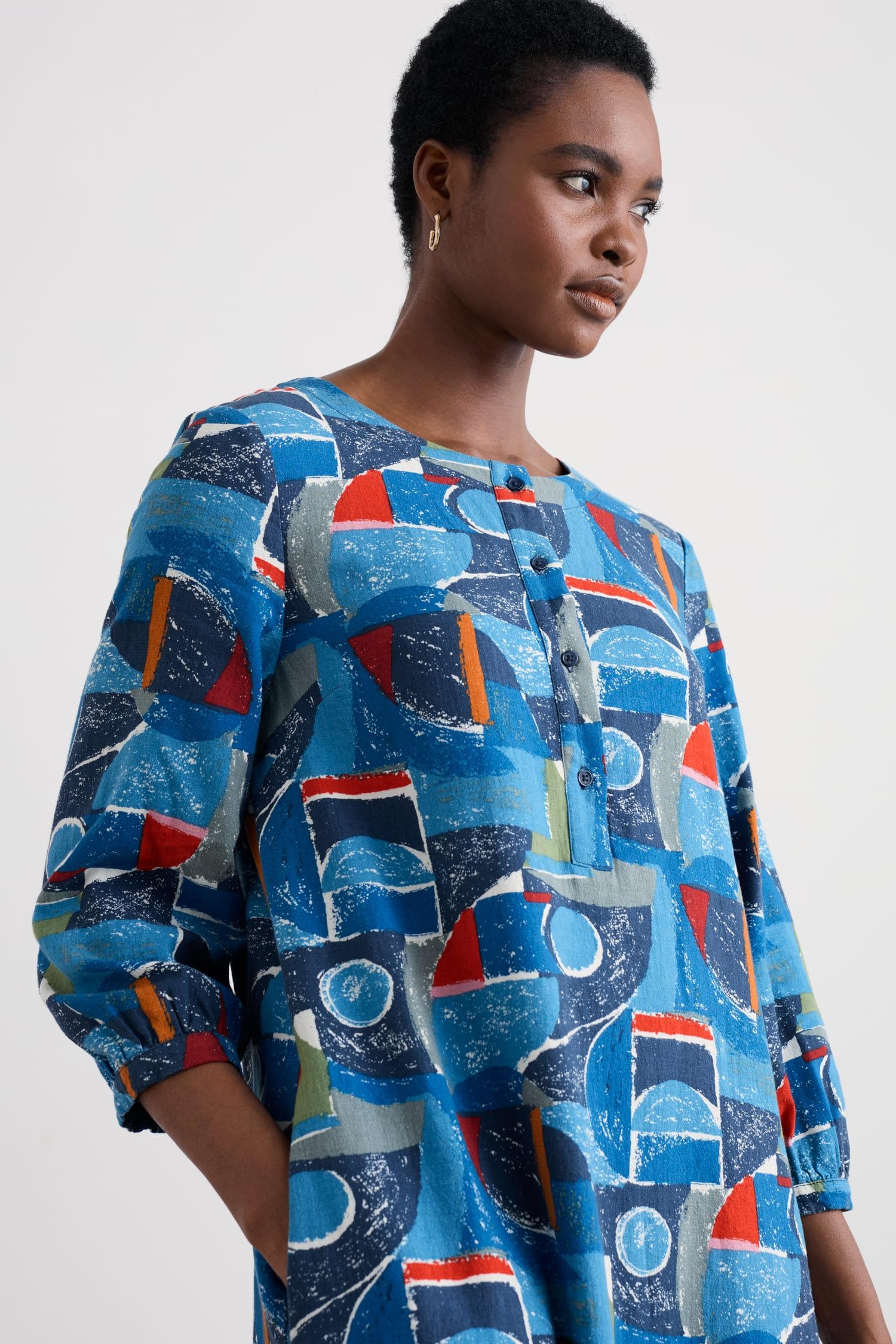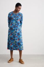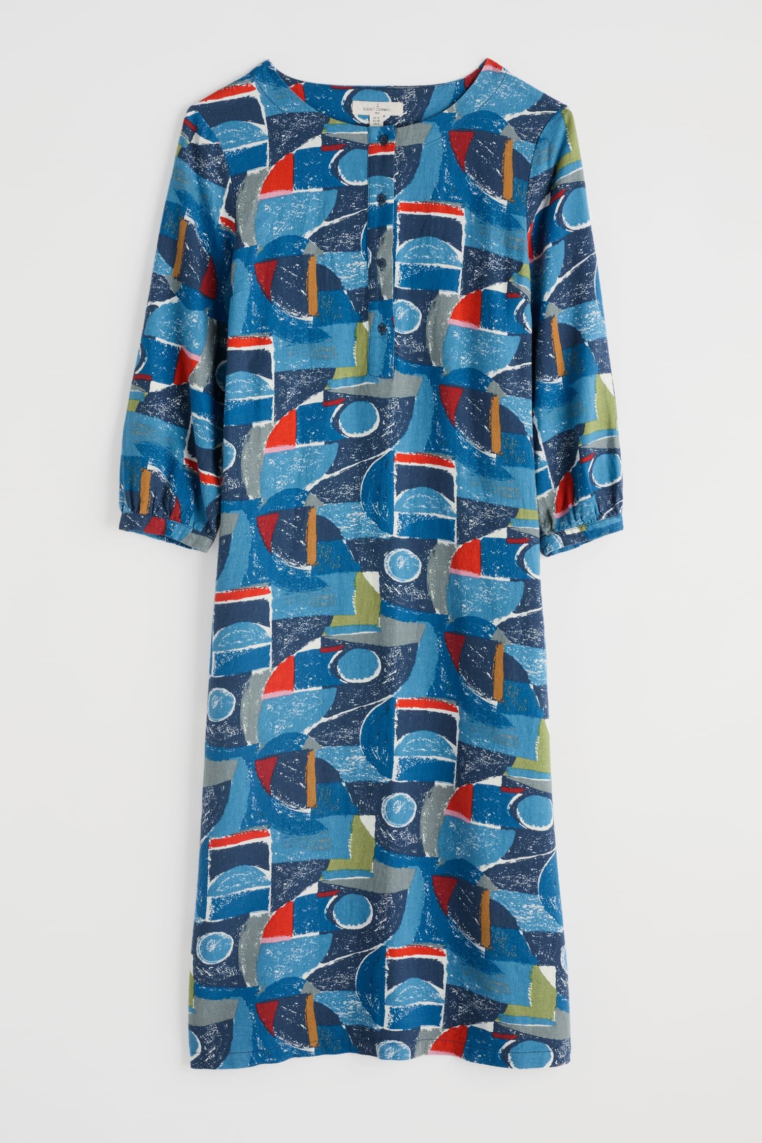 A dress in an airy linen blend with a button-up front and 3/4 length sleeves that have gentle volume at the cuff. The soft A-line shape has handy pockets and falls below the knee for stylish ease. Choose from artist-designed prints inspired by the Cornish landscape.
