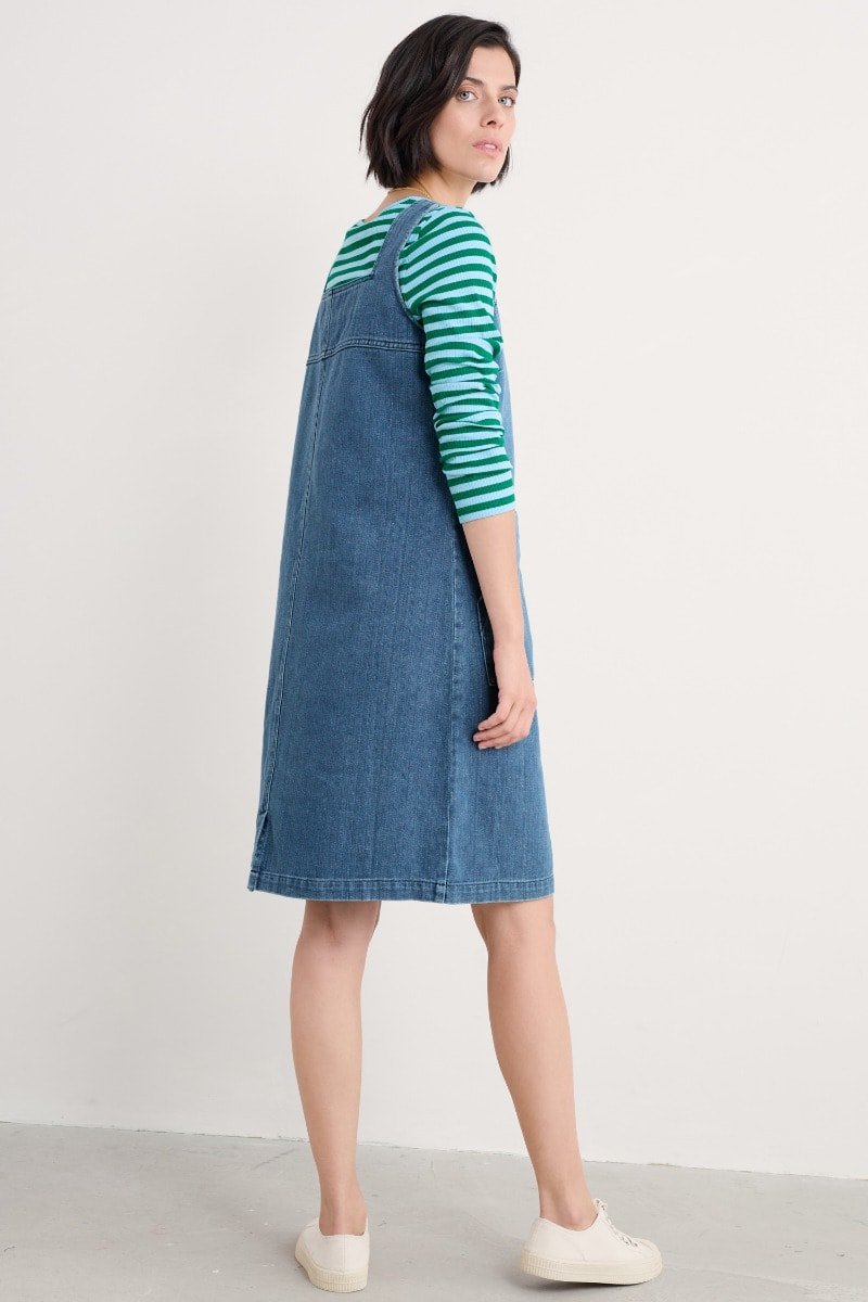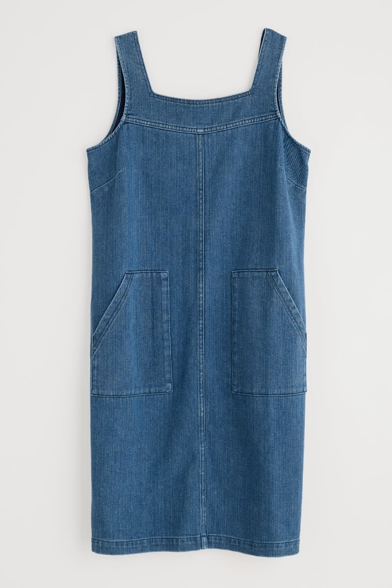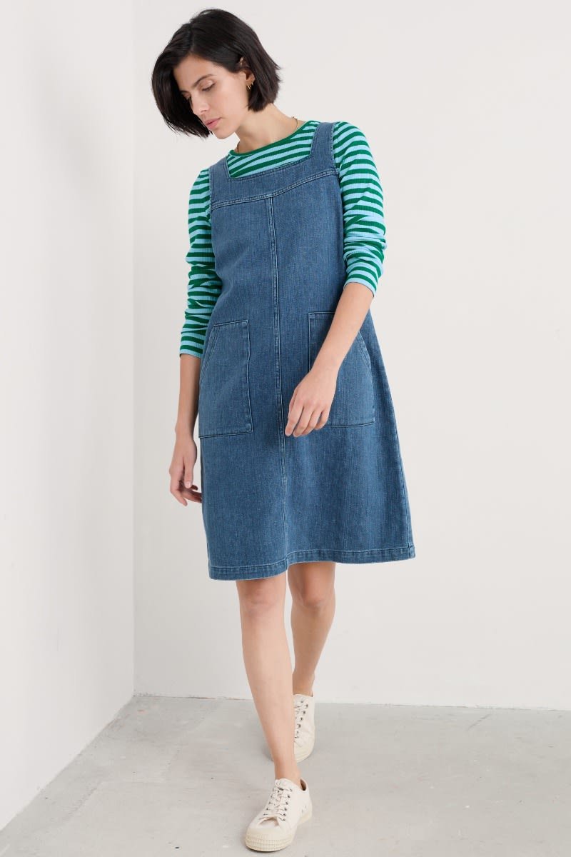 A pinafore dress inspired by the aprons of Cornish artists, with a square neckline, straight fit and generous patch pockets. Perfect for layering through the seasons.