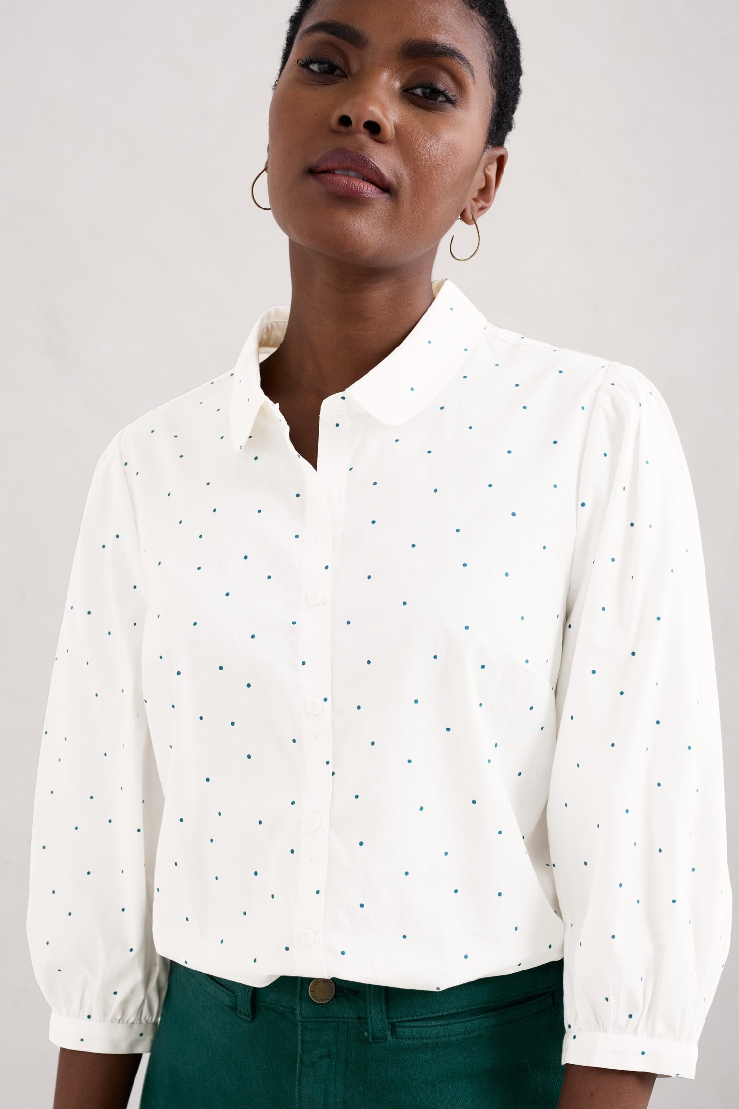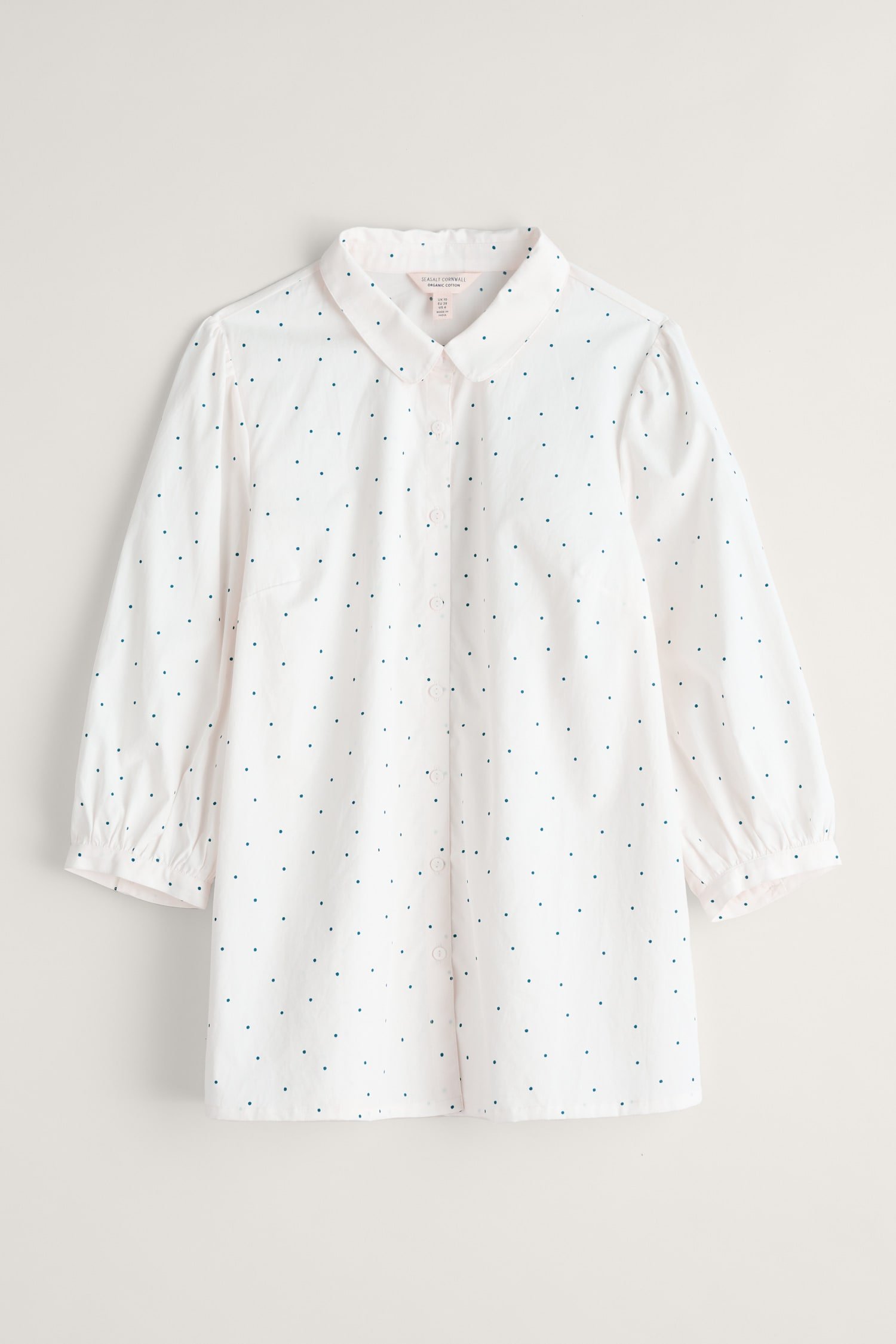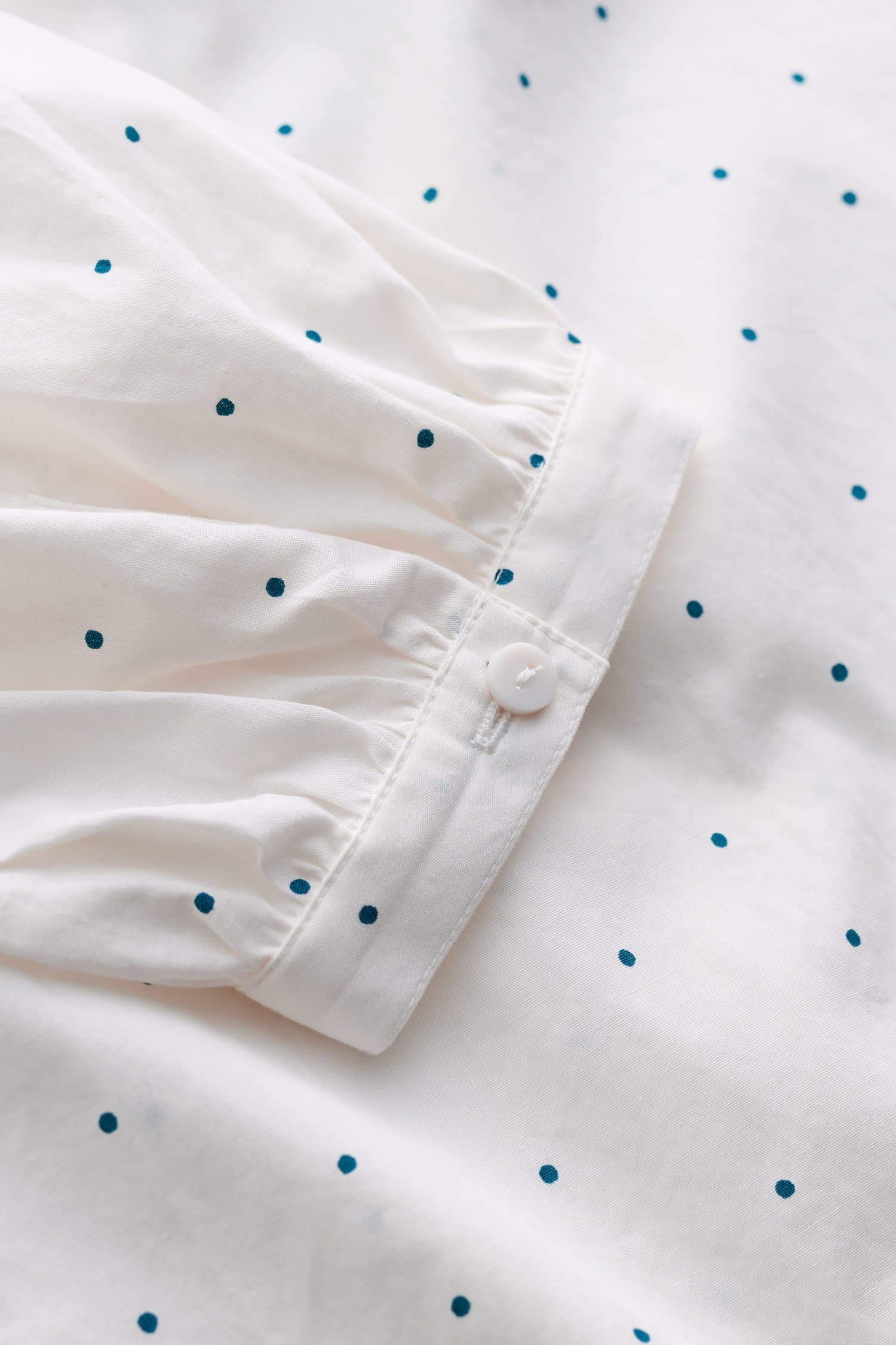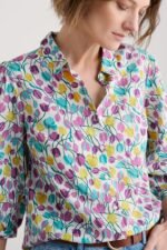 A printed organic cotton blouse with gathered cuffs and shoulder seams, which create a lovely volume through the sleeves. A great piece for layering through the seasons.