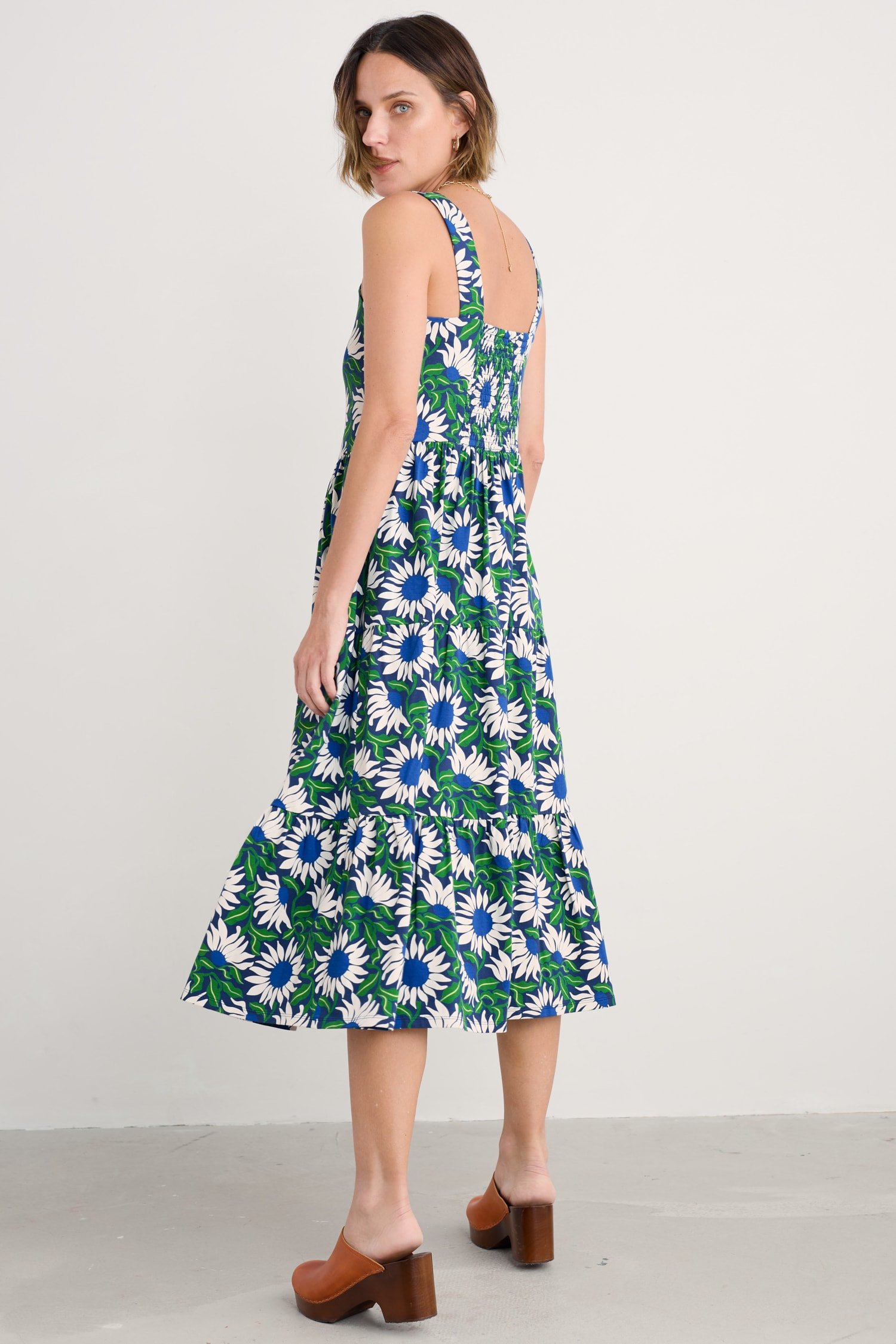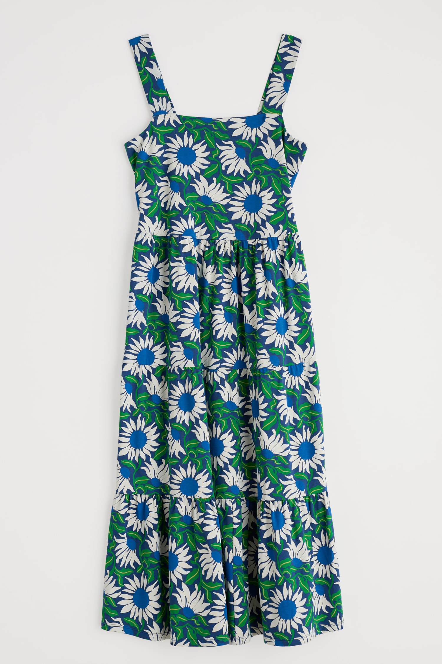 A new summer favourite to take you from the beach to the bar all season long. Made from soft organic cotton with a touch of stretch, we’ve given the Deep Water Dress a flattering square neck with wide straps. Elasticated smocking on the back creates extra space for a comfortable fit, and gathered tiers in the ankle-length skirt give the dress a gentle, floaty movement.