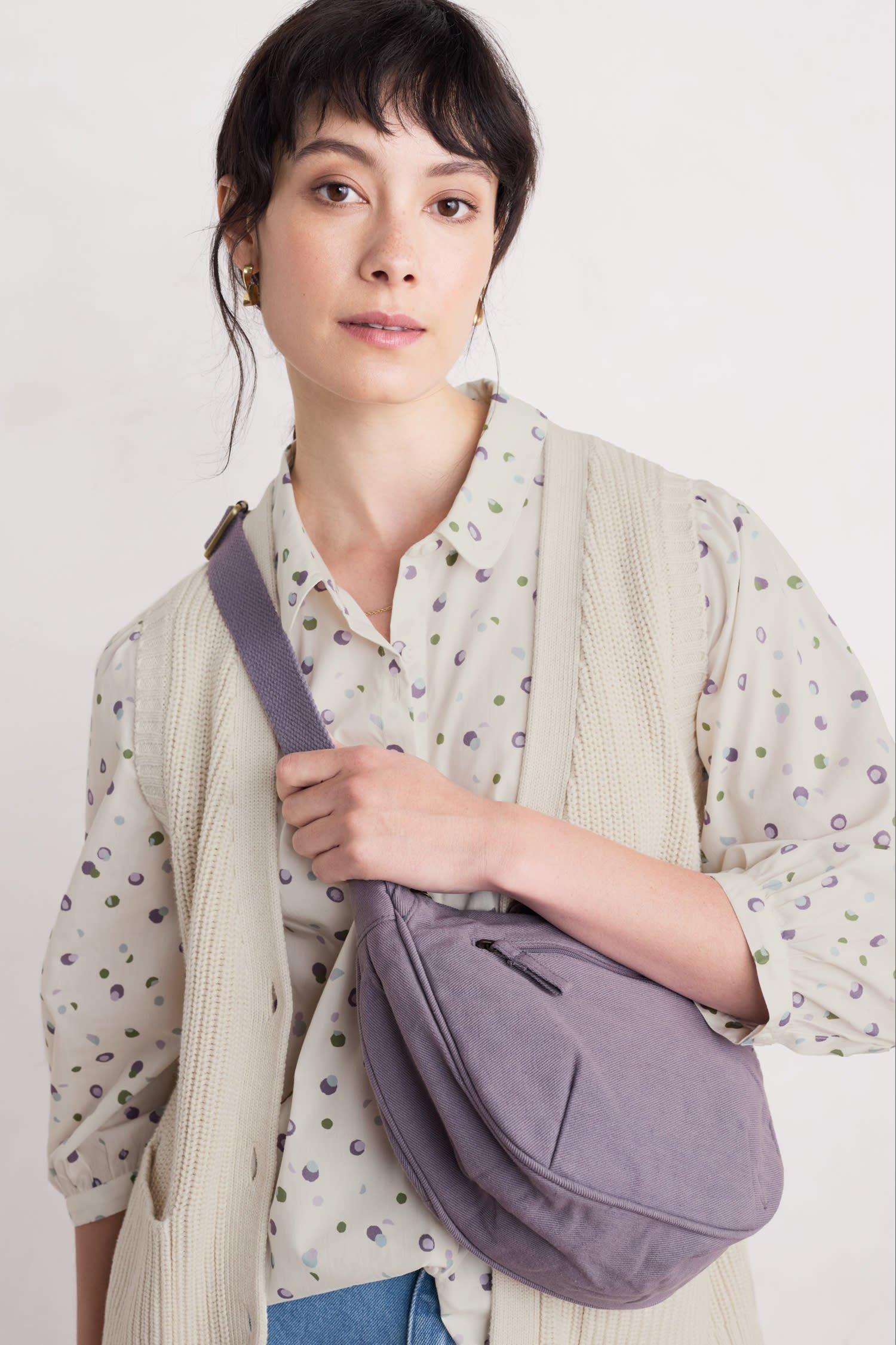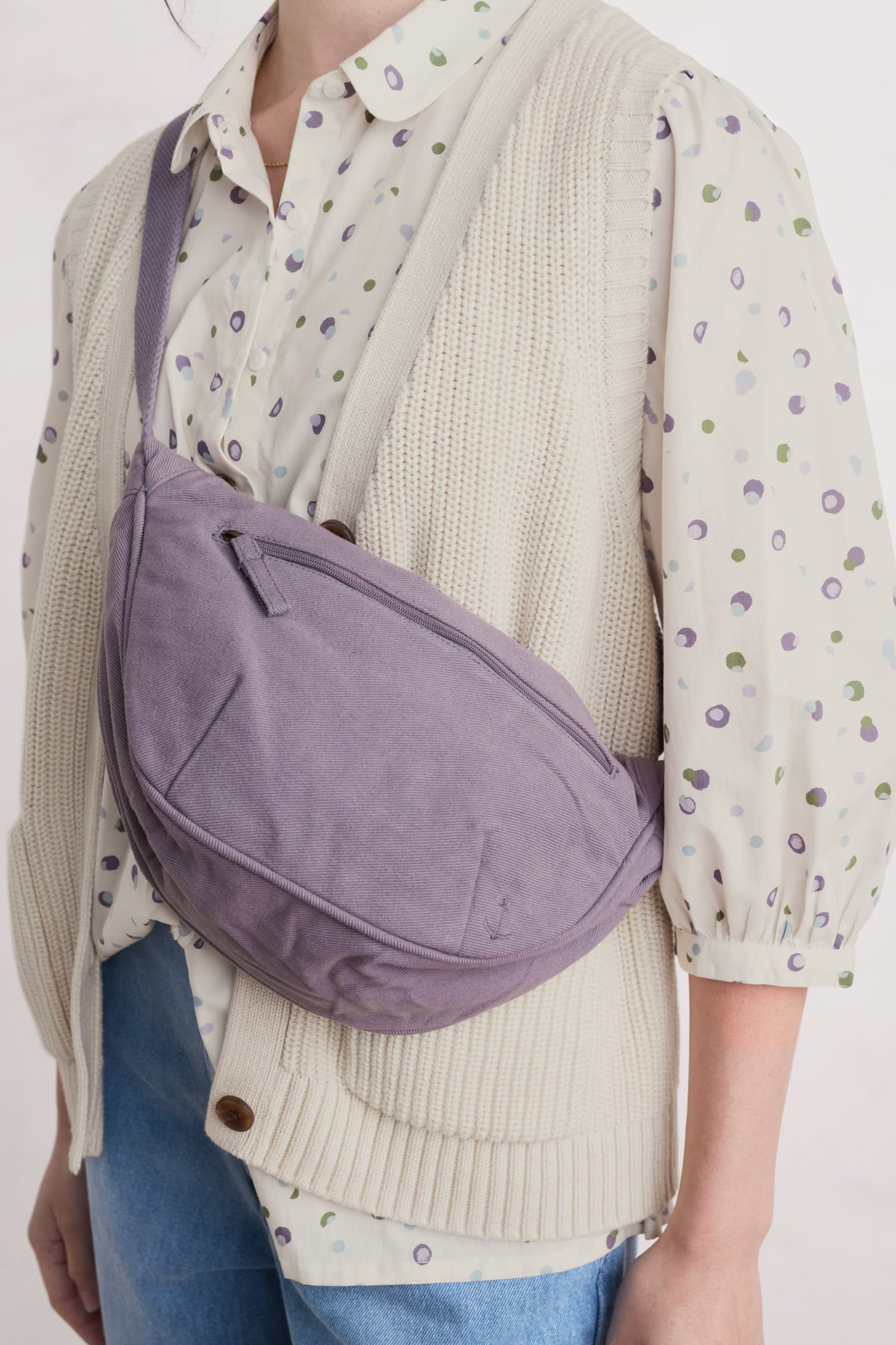 A half-circle cross body sling bag made from organic cotton, with handy zipped compartments and an adjustable strap. It’s the perfect size for your daily essentials and comes in vibrant, versatile colours to complement any outfit.