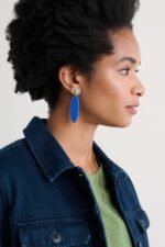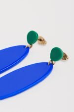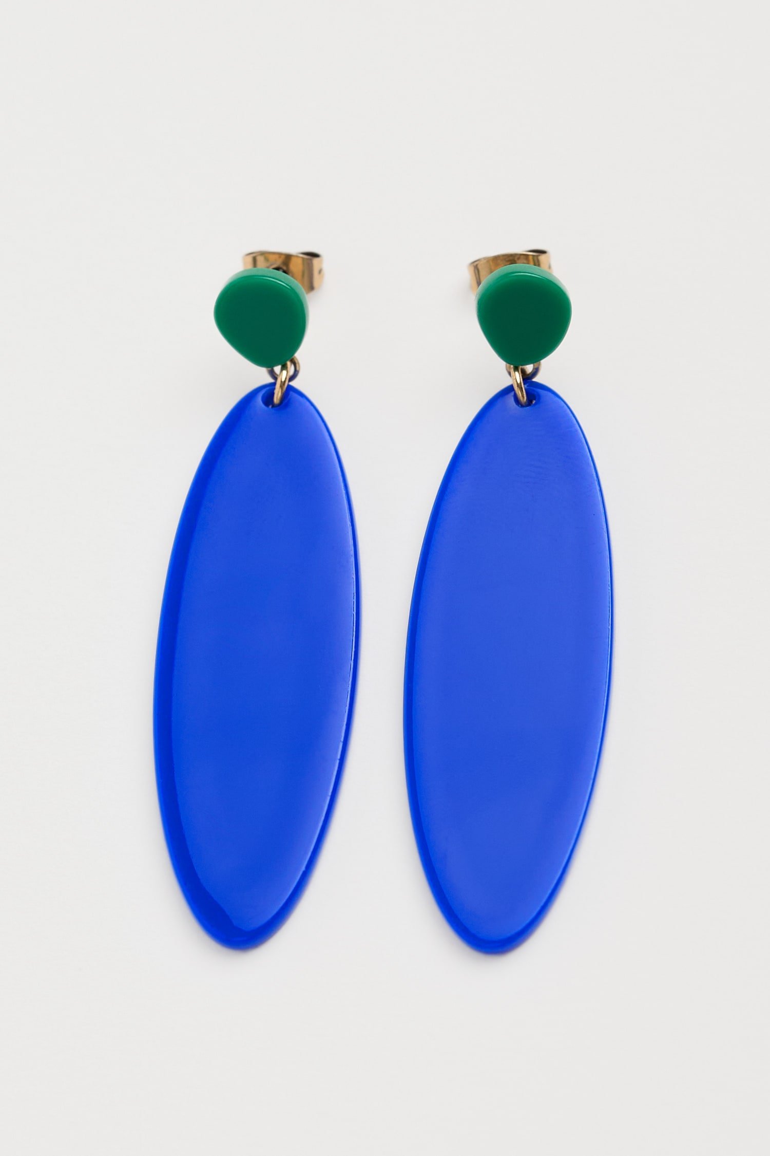 We love the easy swaying movement of these elegant, sculptural drop earrings. The stud fastening and long drop bead are made from marbled resin for lovely depth of semi-opaque colour. Versatile and effortless.