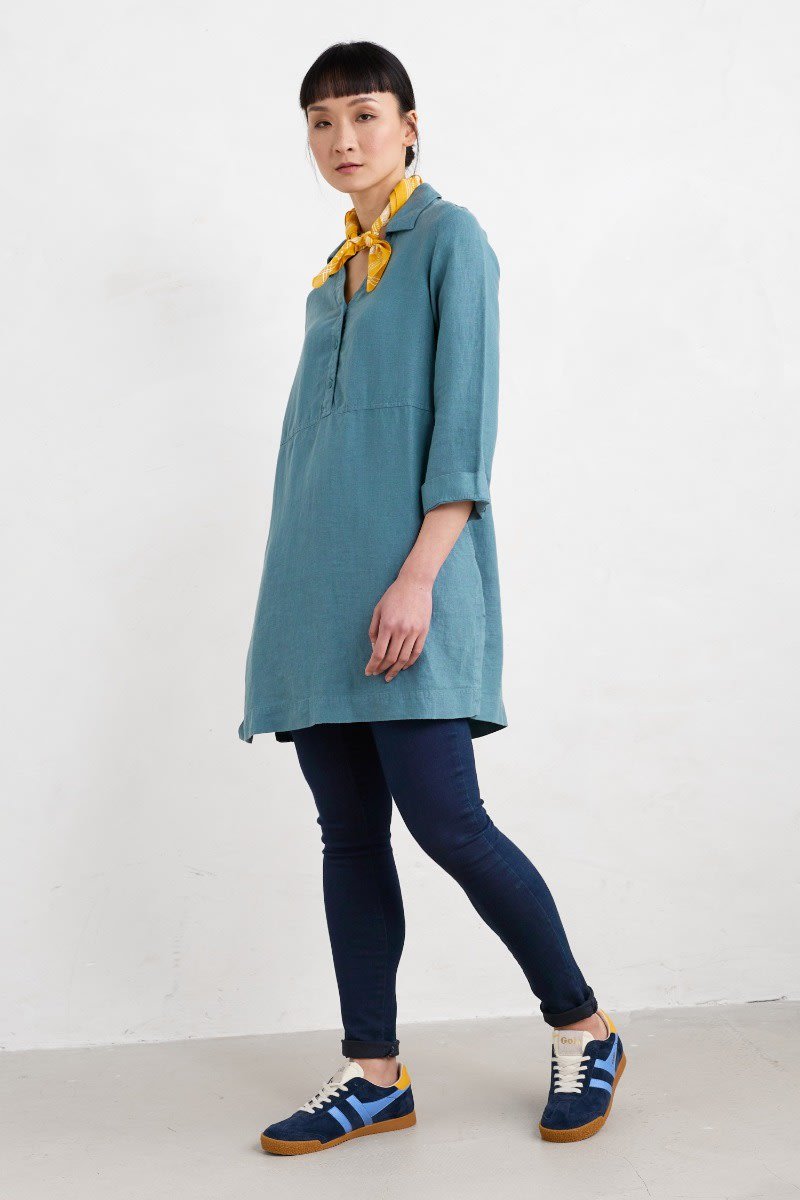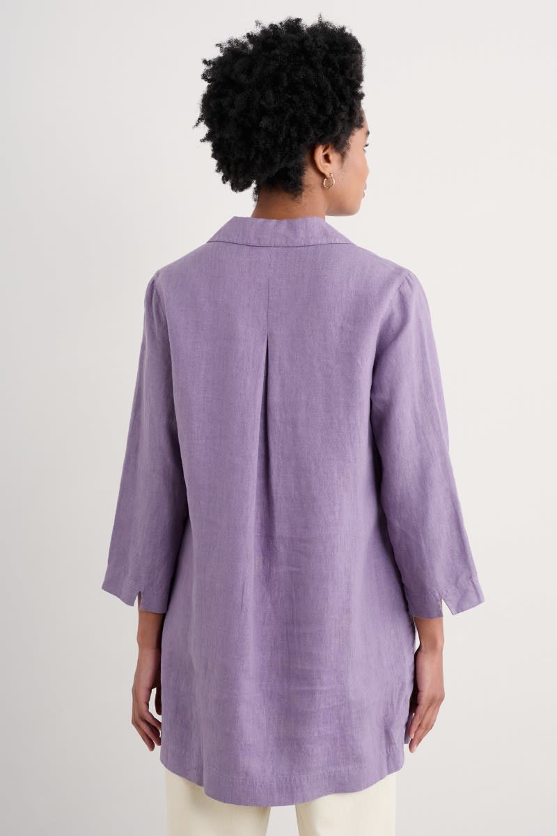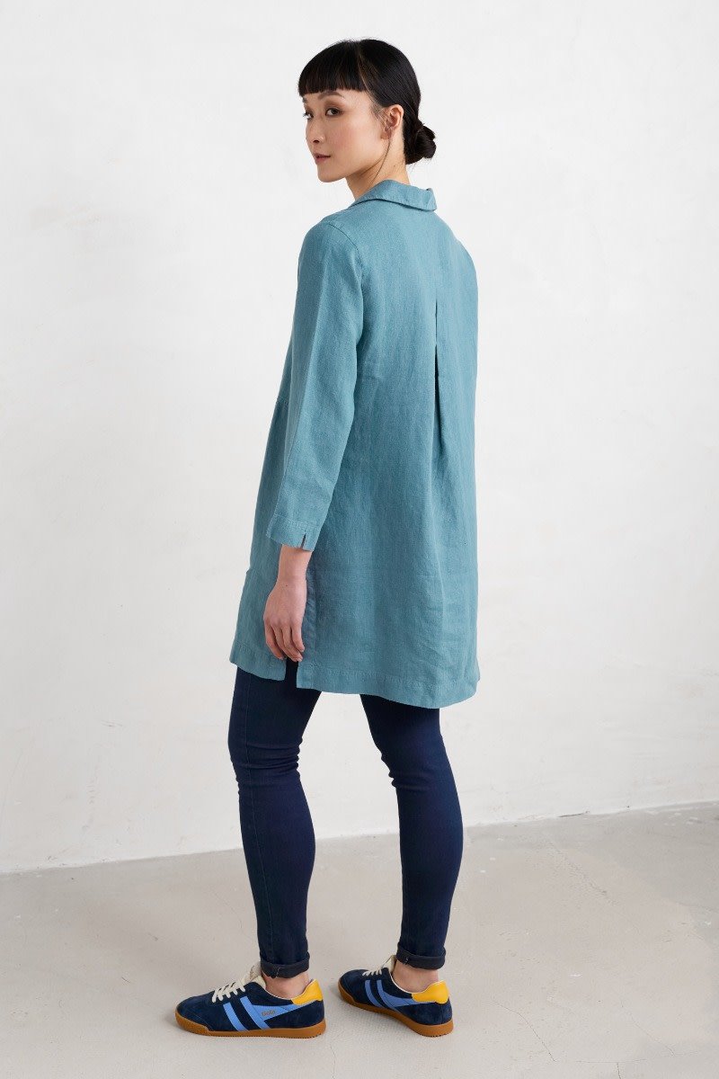 Airy and relaxed, our mid-length Early Sun Tunic is woven from 100% linen. Designed to get better with every wash and wear, we’ve given this timeless style bracelet-length sleeves, a relaxed collar and V-neck, as well as a simple box pleat to the back to lend the body a gentle swing. The hem is finished with deep vents at the side with heritage-inspired bar tack stitches for longevity.