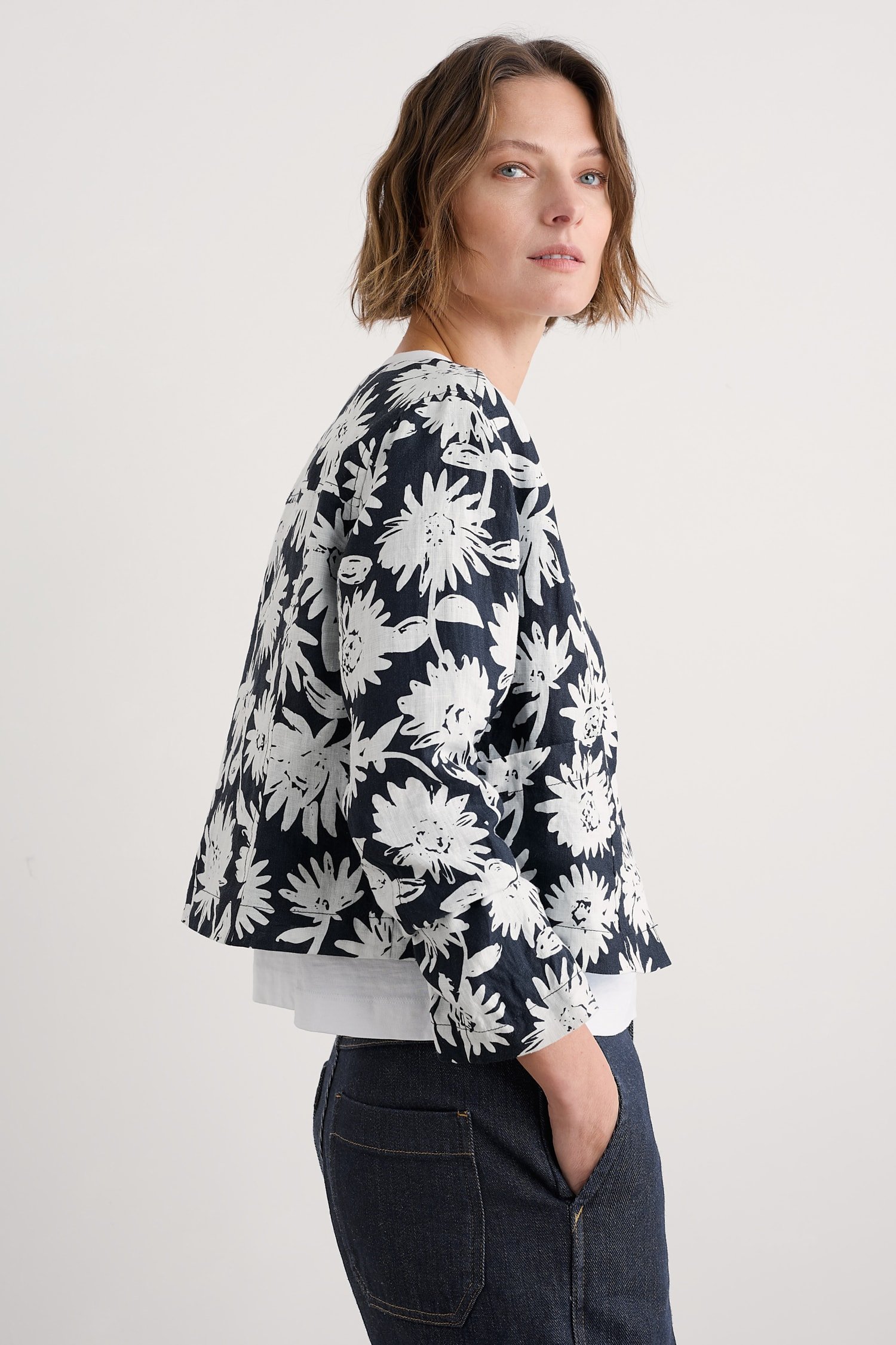 One of our most versatile linen jackets, with a panelled shape that’s emphasised by subtle highs and lows in the colour. We love it styled simply with a T-Shirt and trousers, or paired with other pieces in complementary colours from our linen collection.
