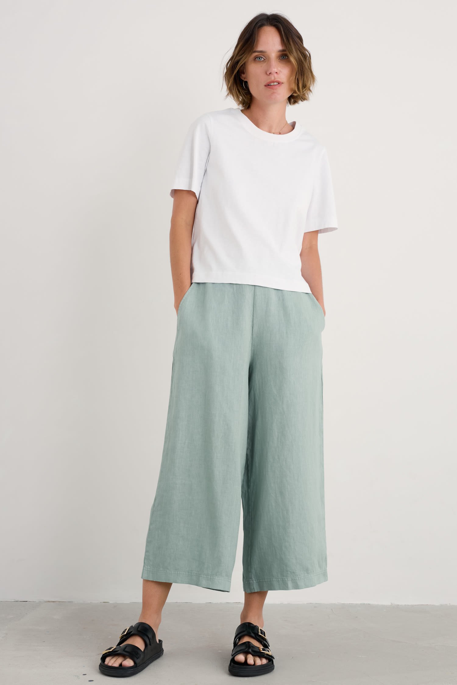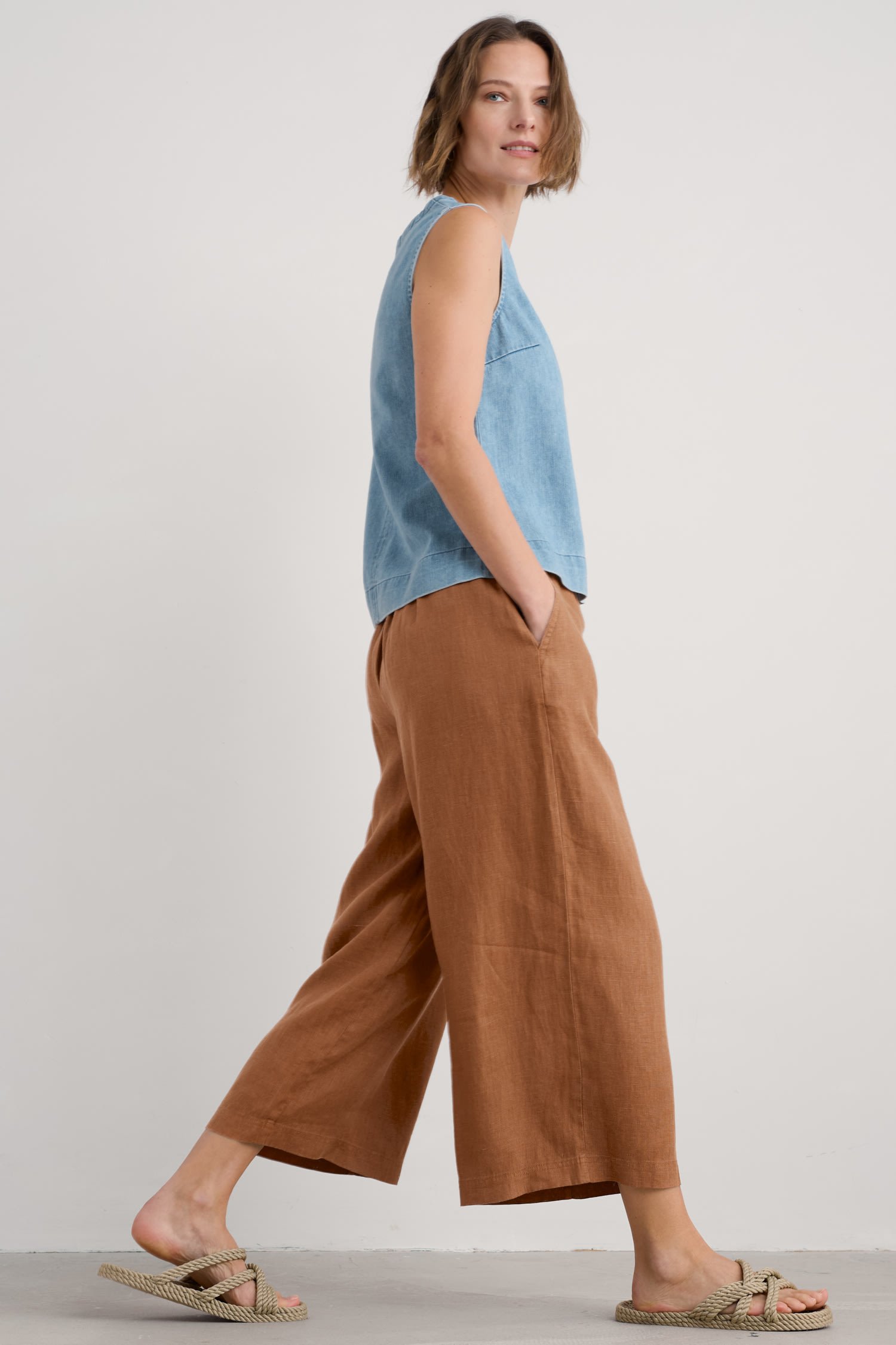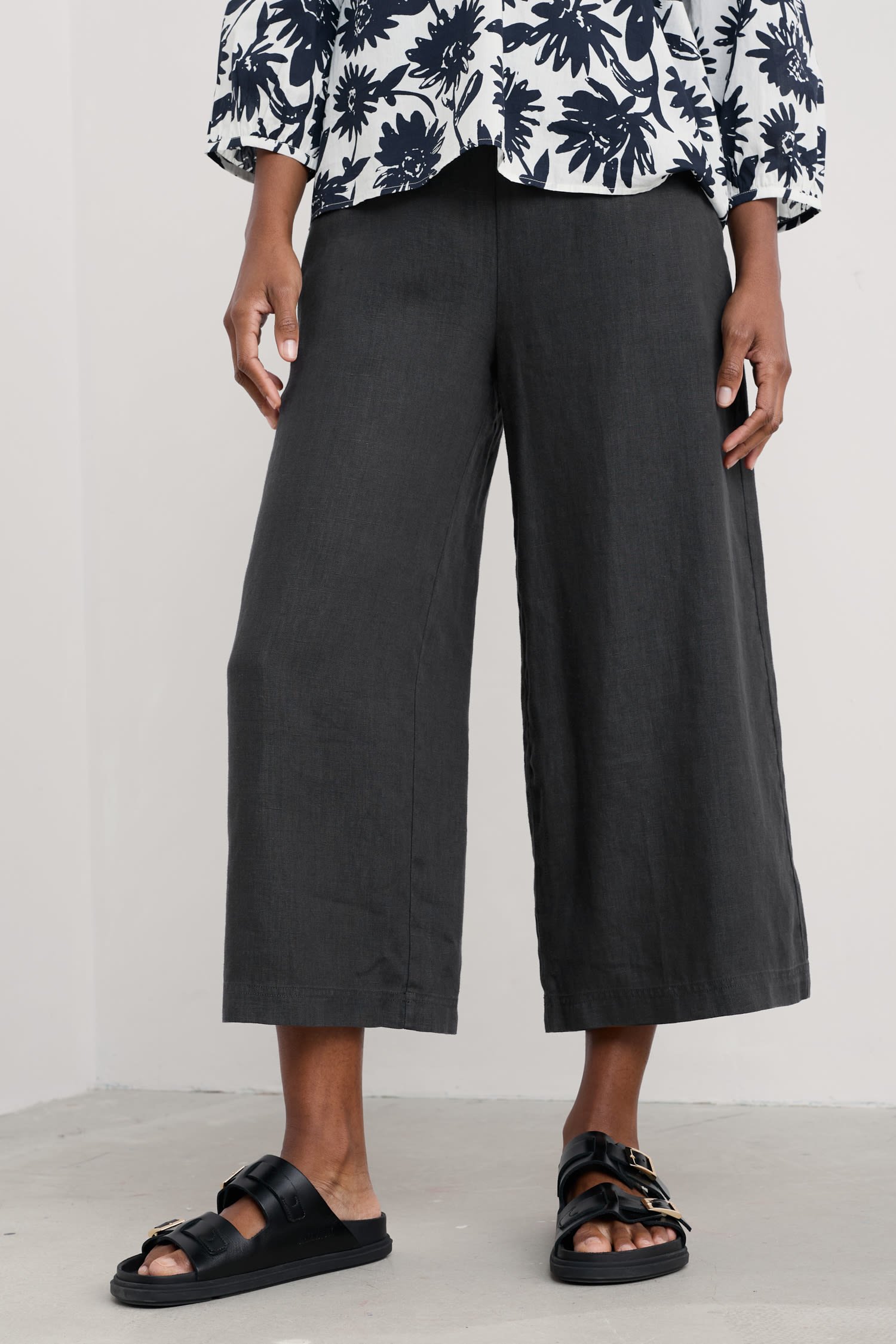 A summertime staple. The Merrivale Culottes sit on the natural waist, with a hidden side zip and elasticated back waist. Made from a breathable garment-dyed linen, we’ve given them a classic culotte shape with a wide cropped leg and 2 slanted side pockets for days on the go.