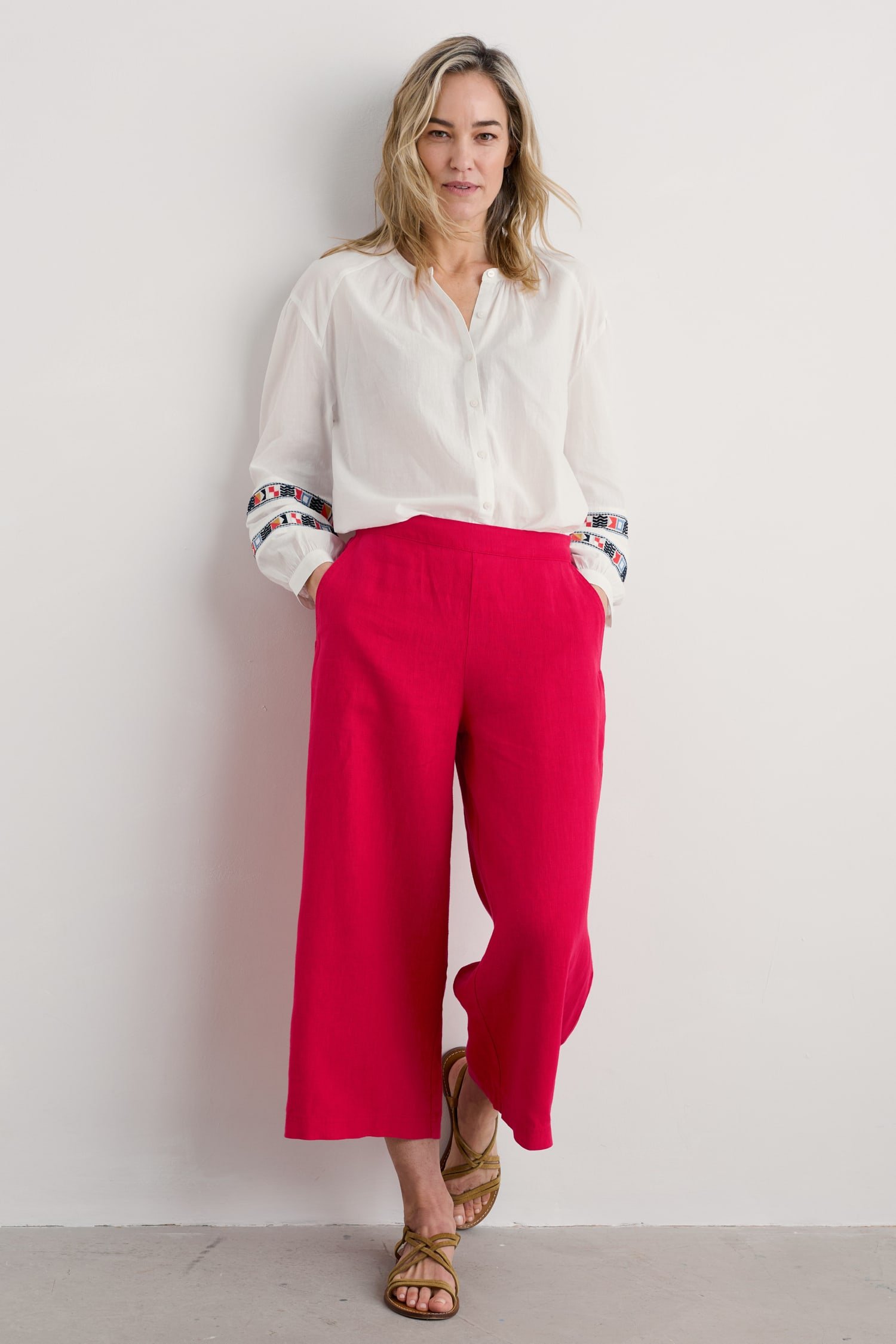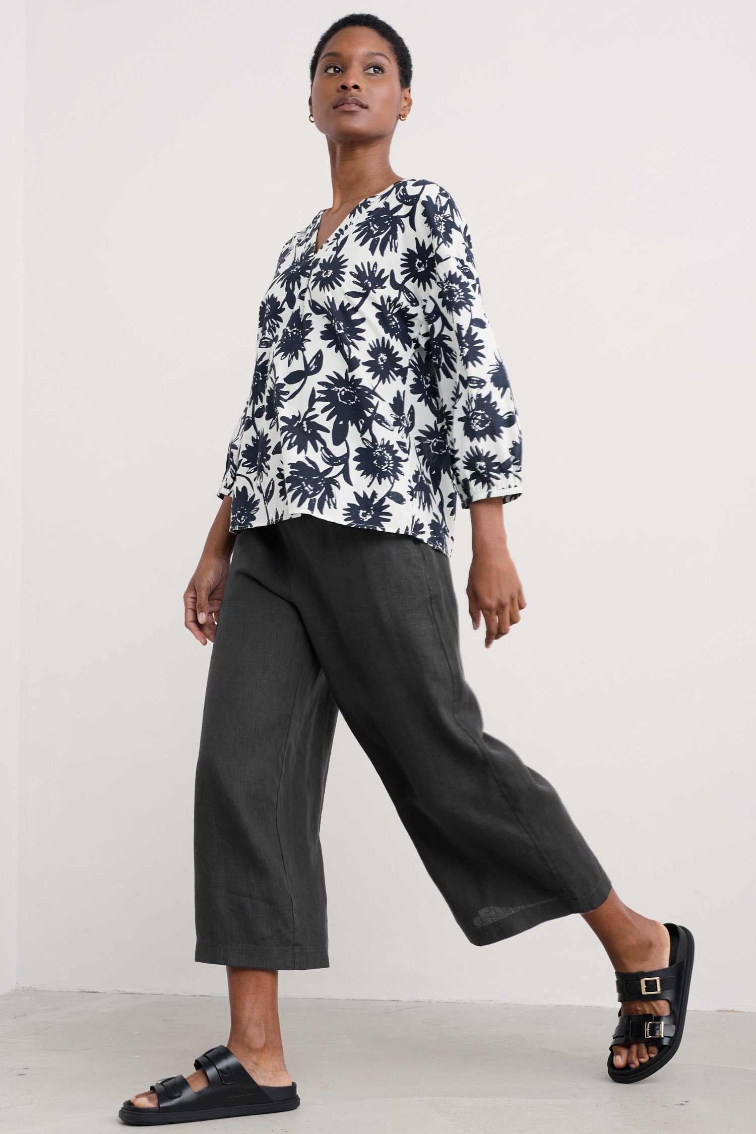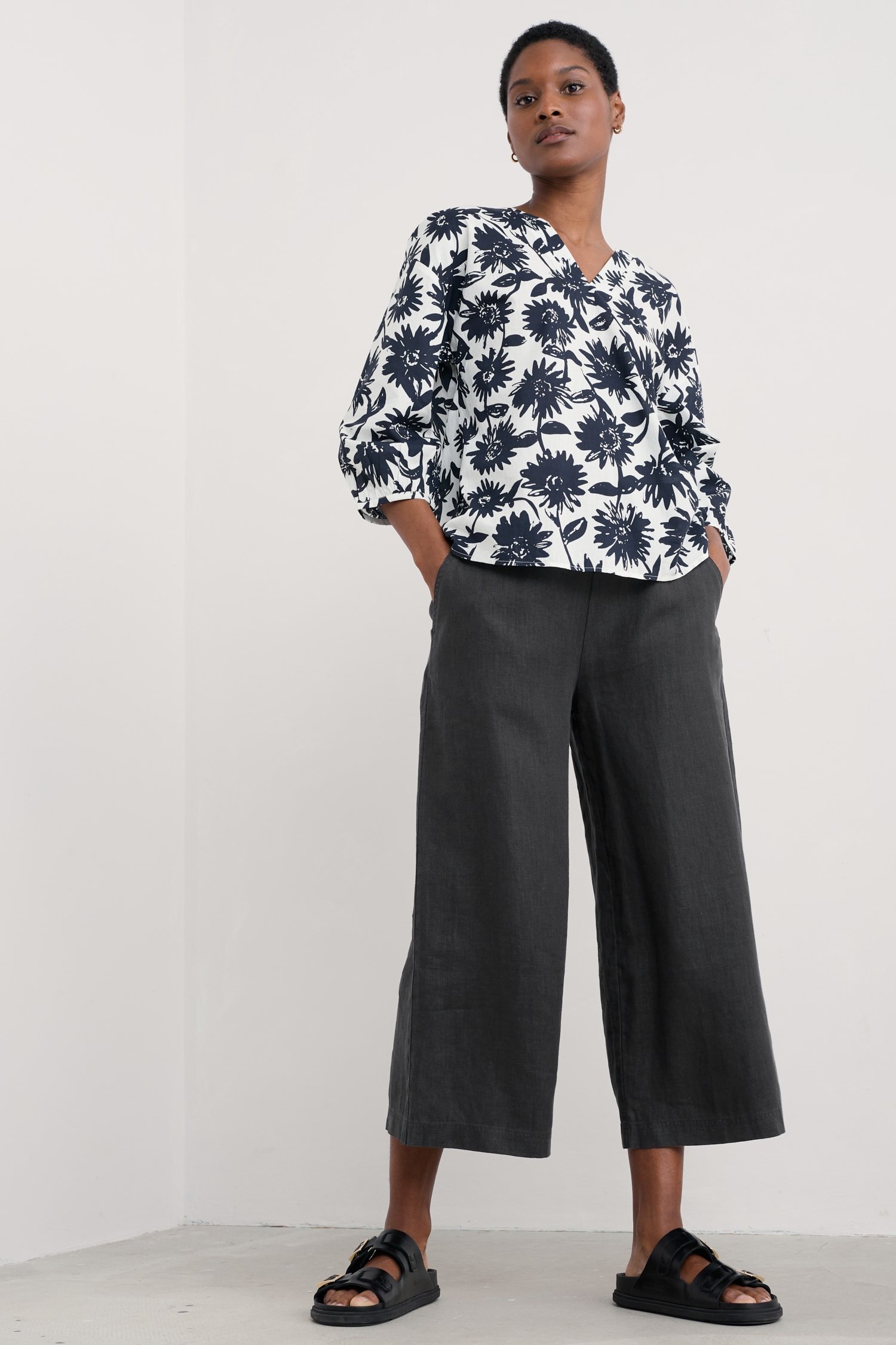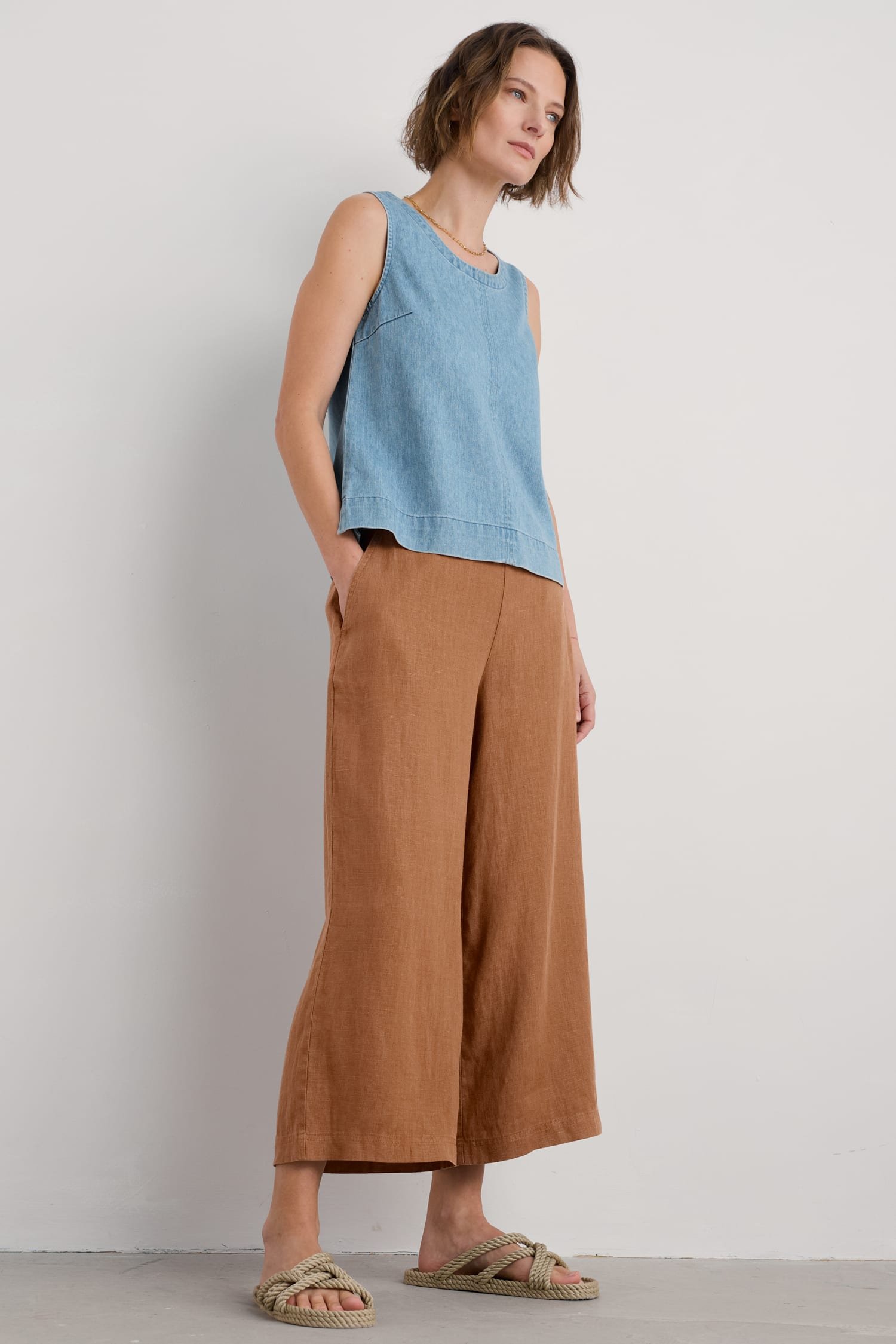A summertime staple. The Merrivale Culottes sit on the natural waist, with a hidden side zip and elasticated back waist. Made from a breathable garment-dyed linen, we’ve given them a classic culotte shape with a wide cropped leg and 2 slanted side pockets for days on the go.