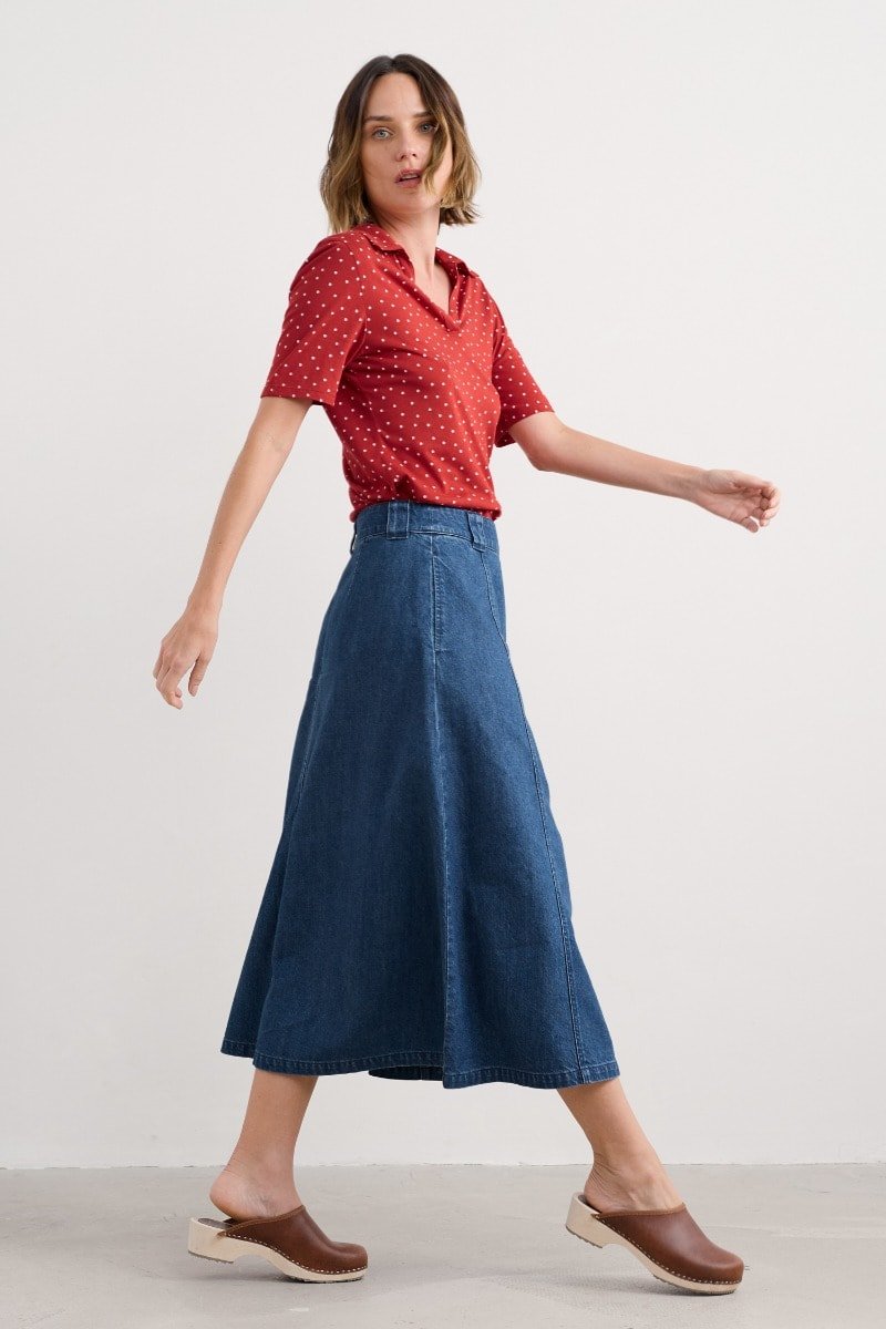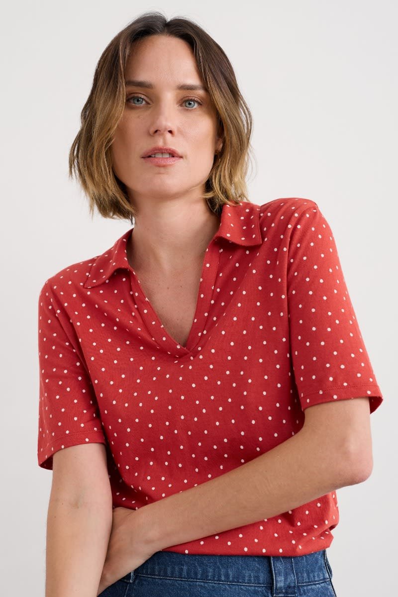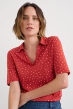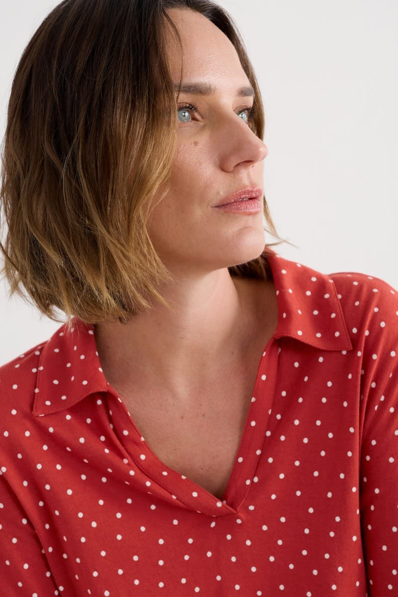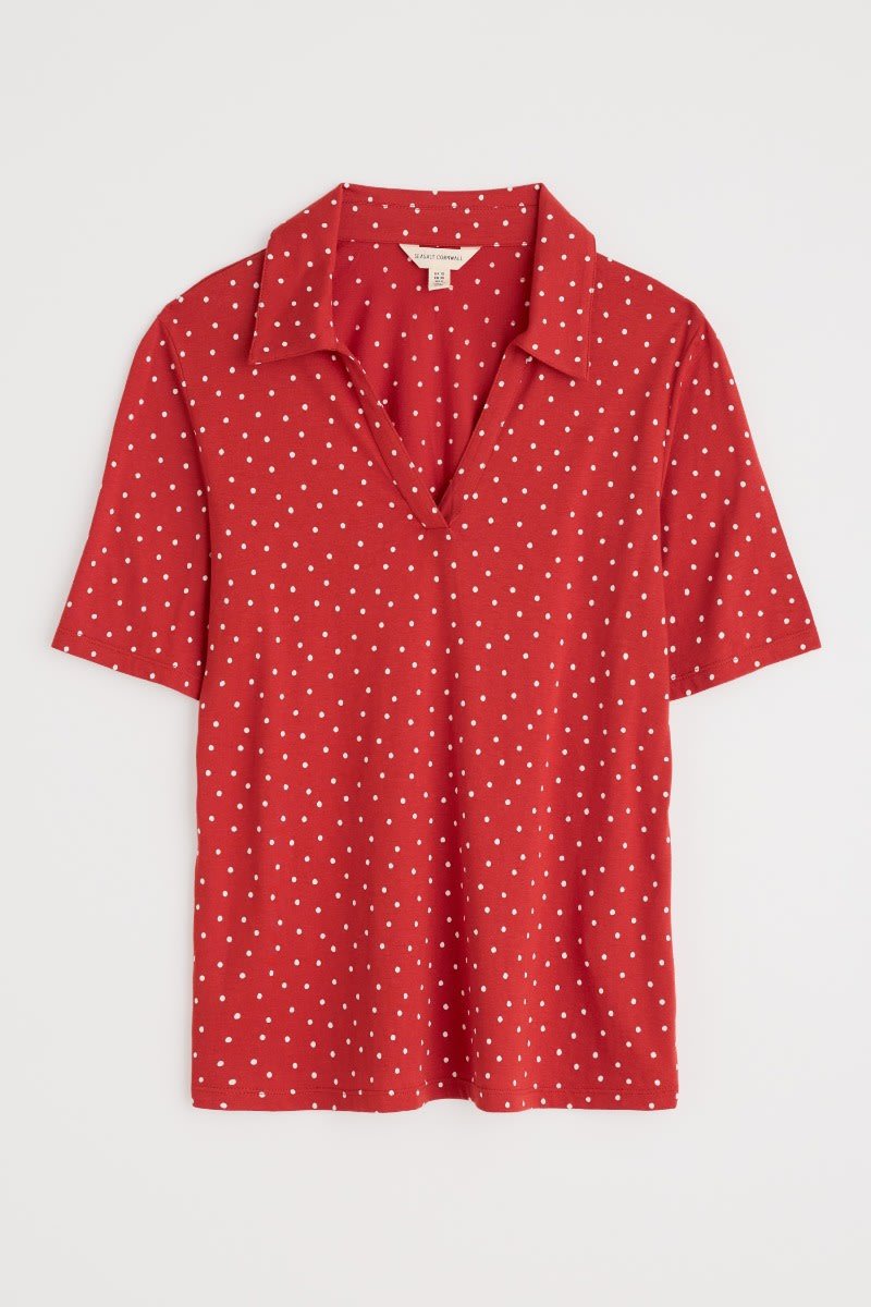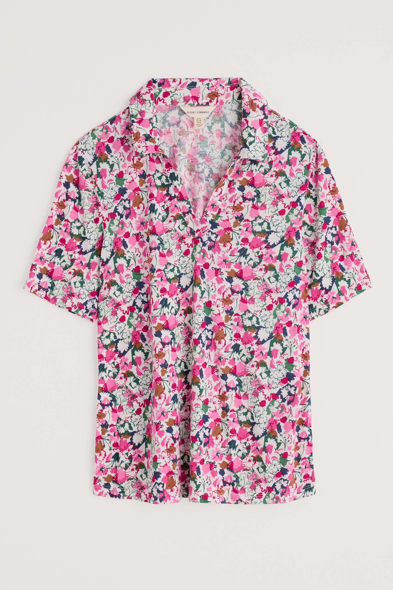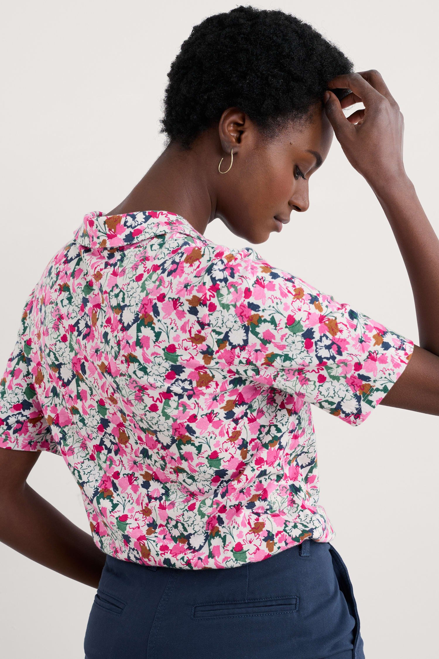 The perfect piece for summer getaways. We’ll pair the easy print on this collared V-neck shirt with plain cropped trousers or shorts. The soft, skimming jersey blend means it’s as cool and comfortable as a T-shirt.