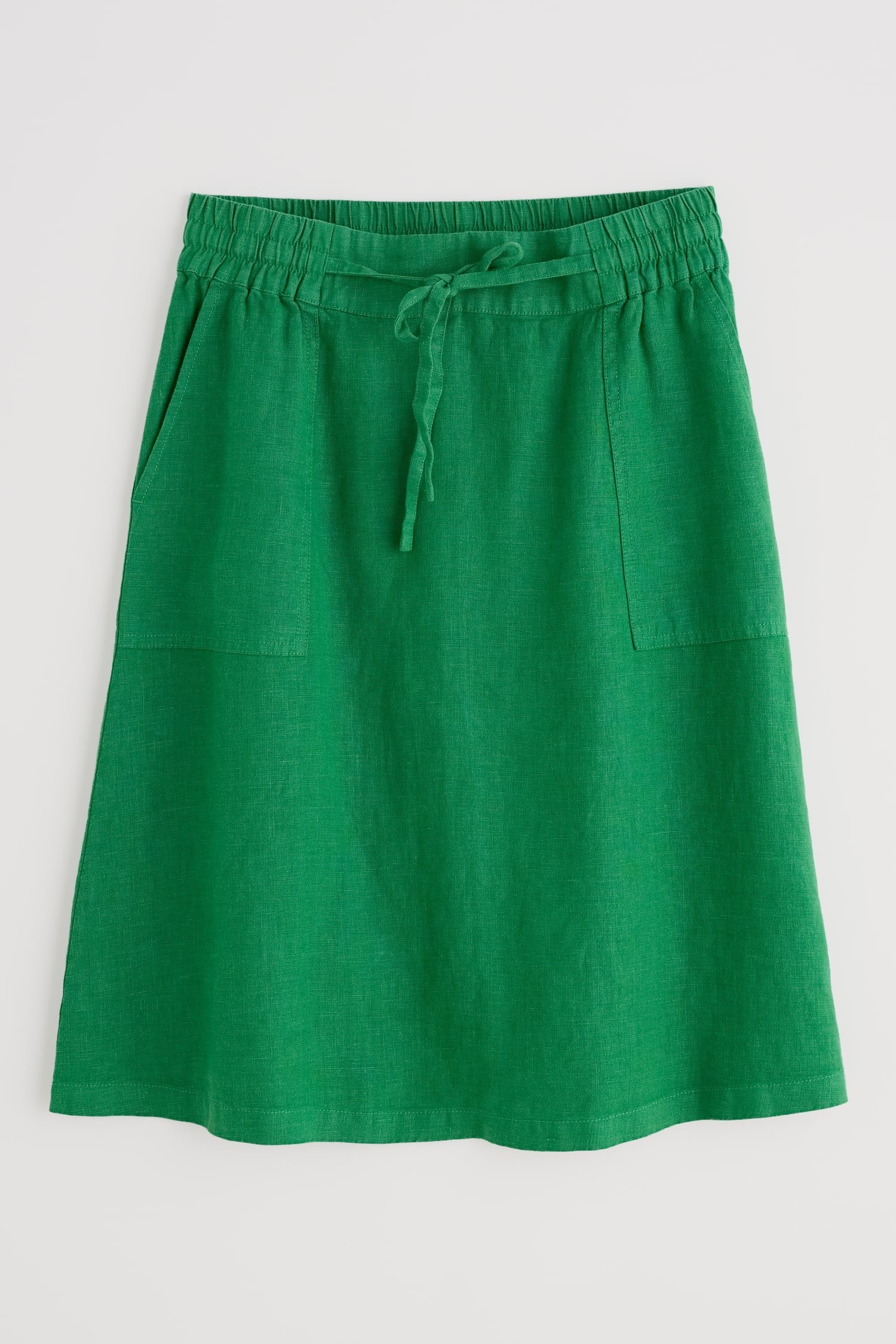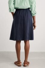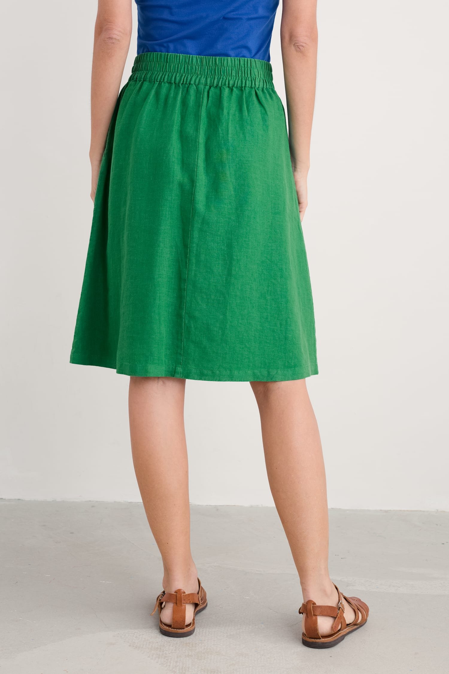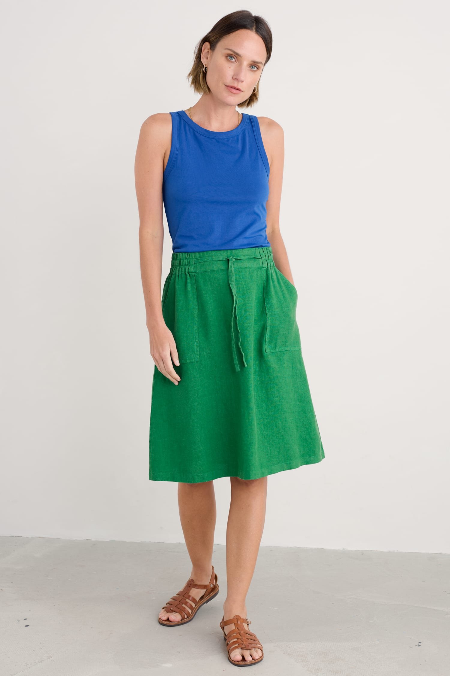 A light and airy knee length linen skirt with a comfortable elasticated waistband and large patch pockets. Available in a collection of garment-dyed shades with a naturally lived in look that gets better with every wear.