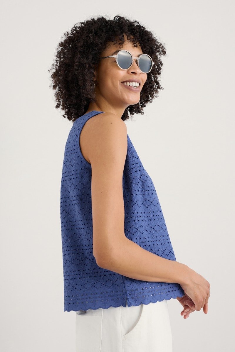The simple styling of the cotton Binnacle vest brings the lovely broderie pattern to the fore. Its scooped neckline is subtly elegant, while the scalloped hem adds a pretty finishing detail. There’s lining for wearable comfort, while the straight cut gives it an easy, skimming fit. Pair with shorts for a beach day or a floaty skirt for a laid-back lunch.