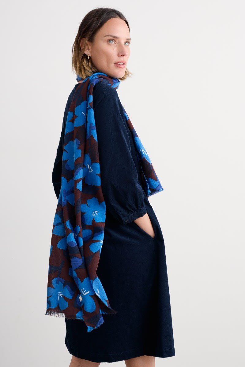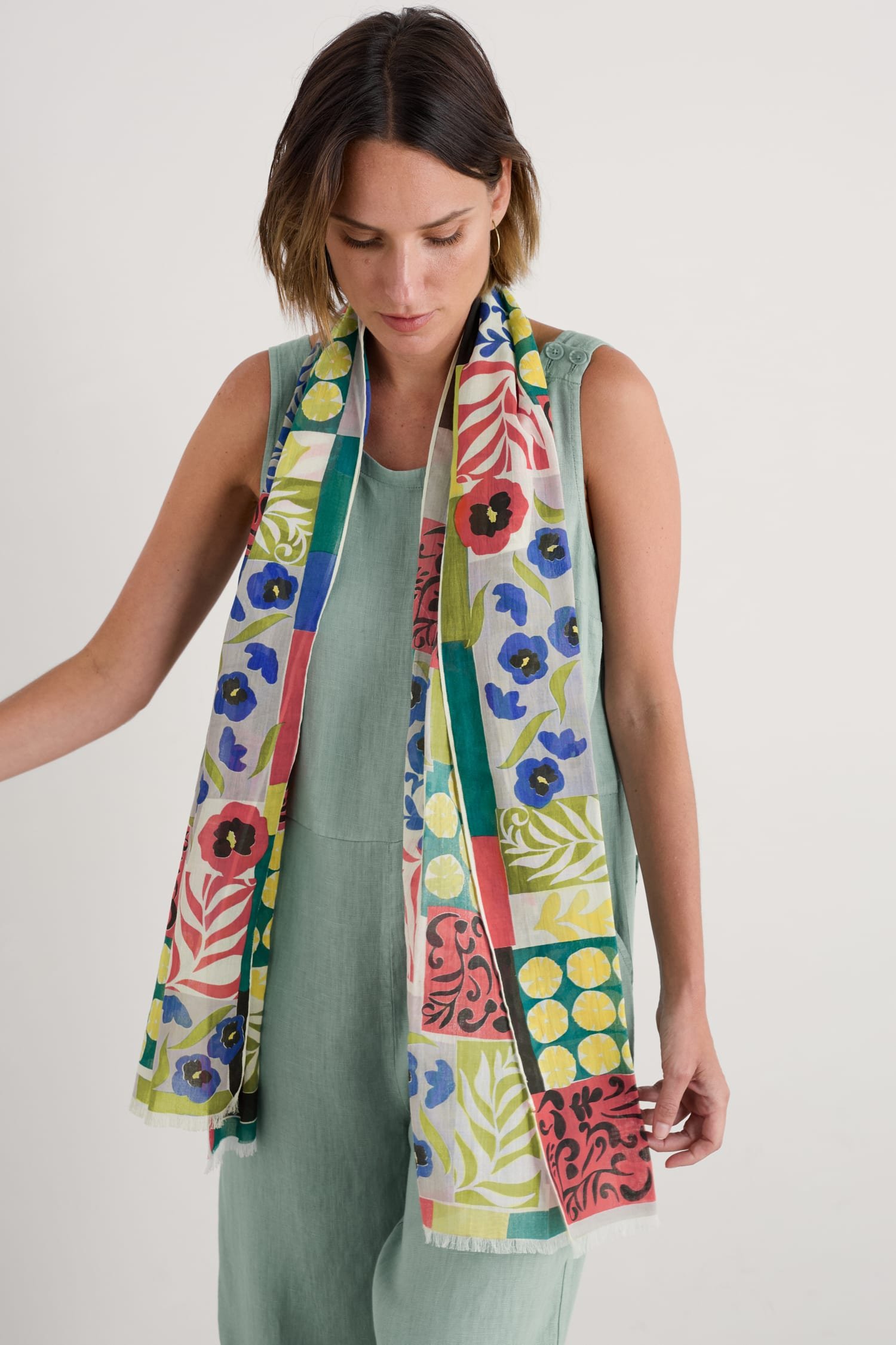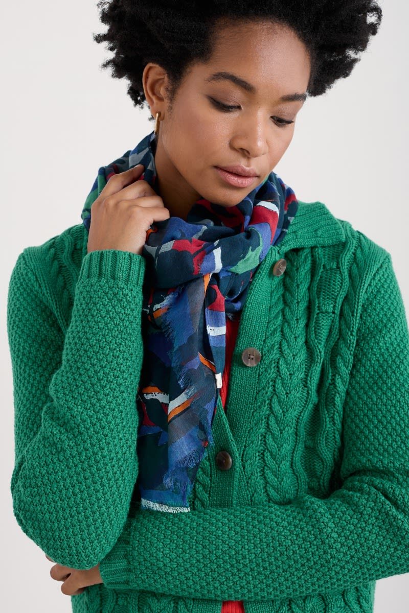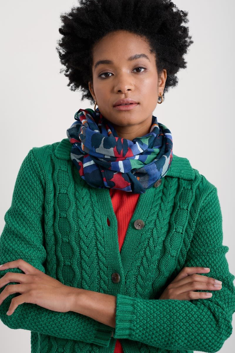 Finish off your look with our May Garland Scarf, made from an airy blend of organic cotton and TENCEL™ for a supple drape and smooth handfeel. Choose from our collection of carefully curated prints, inspired by our Cornish home. A classic rectangular shape, you can wear the May Garland loose, draped or knotted.