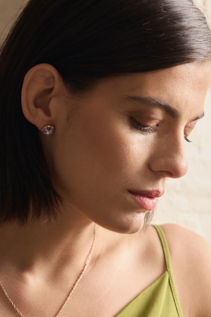 Our simple stud earrings bring a subtle touch of sparkle to any outfit. The multifaceted gem is set in an organically shaped brass surround with contrasting warm tones. A versatile pair that’s discreet for everyday wear and gleams in the evenings.