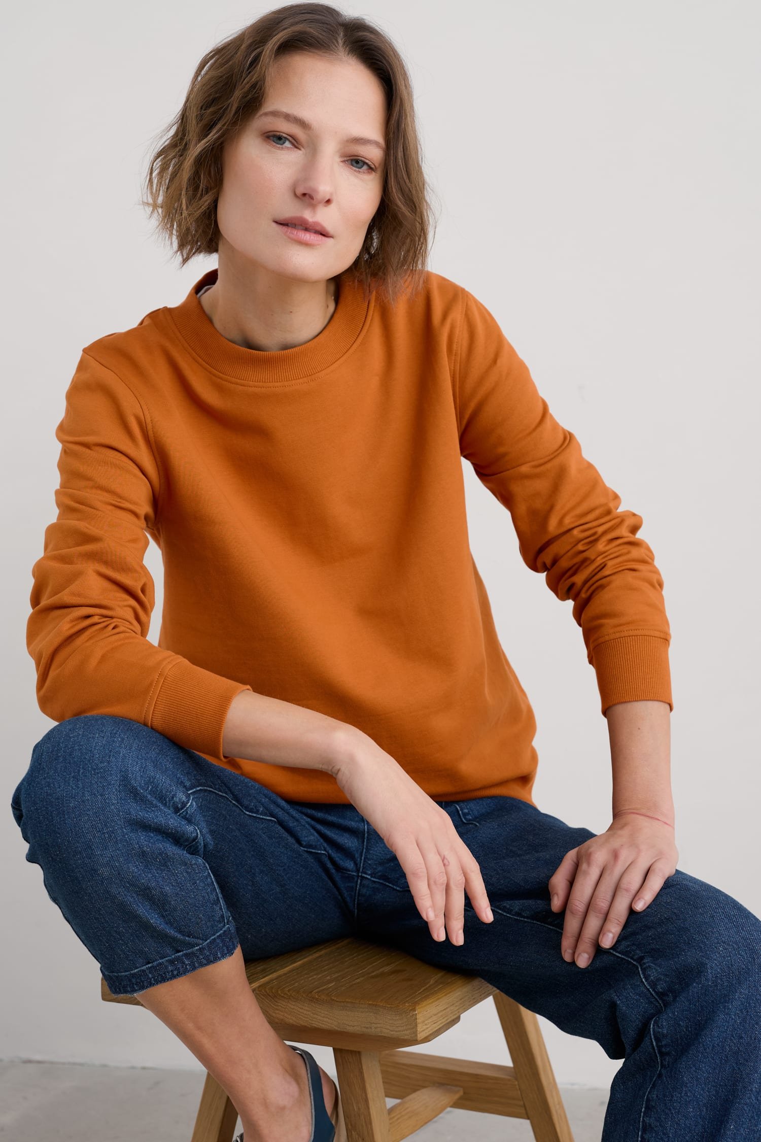 Our classic Mappa sweatshirt is crafted from organic cotton, which has been brushed for extra softness. The dash of added stretch makes sure it’s a comfy fit. Classic ribbed trims at the crew neck, cuffs and hem give the plain sweatshirt a neat finish. A piece you’ll reach for time and time again.