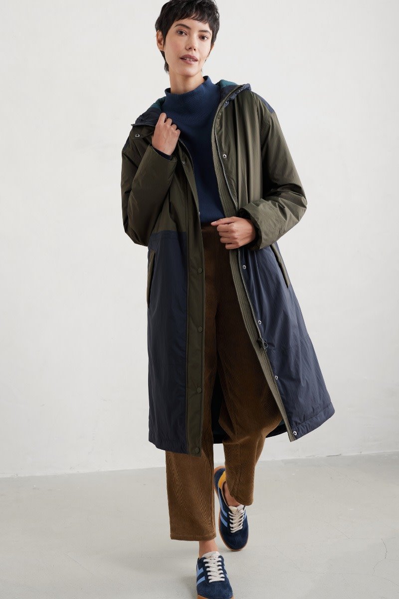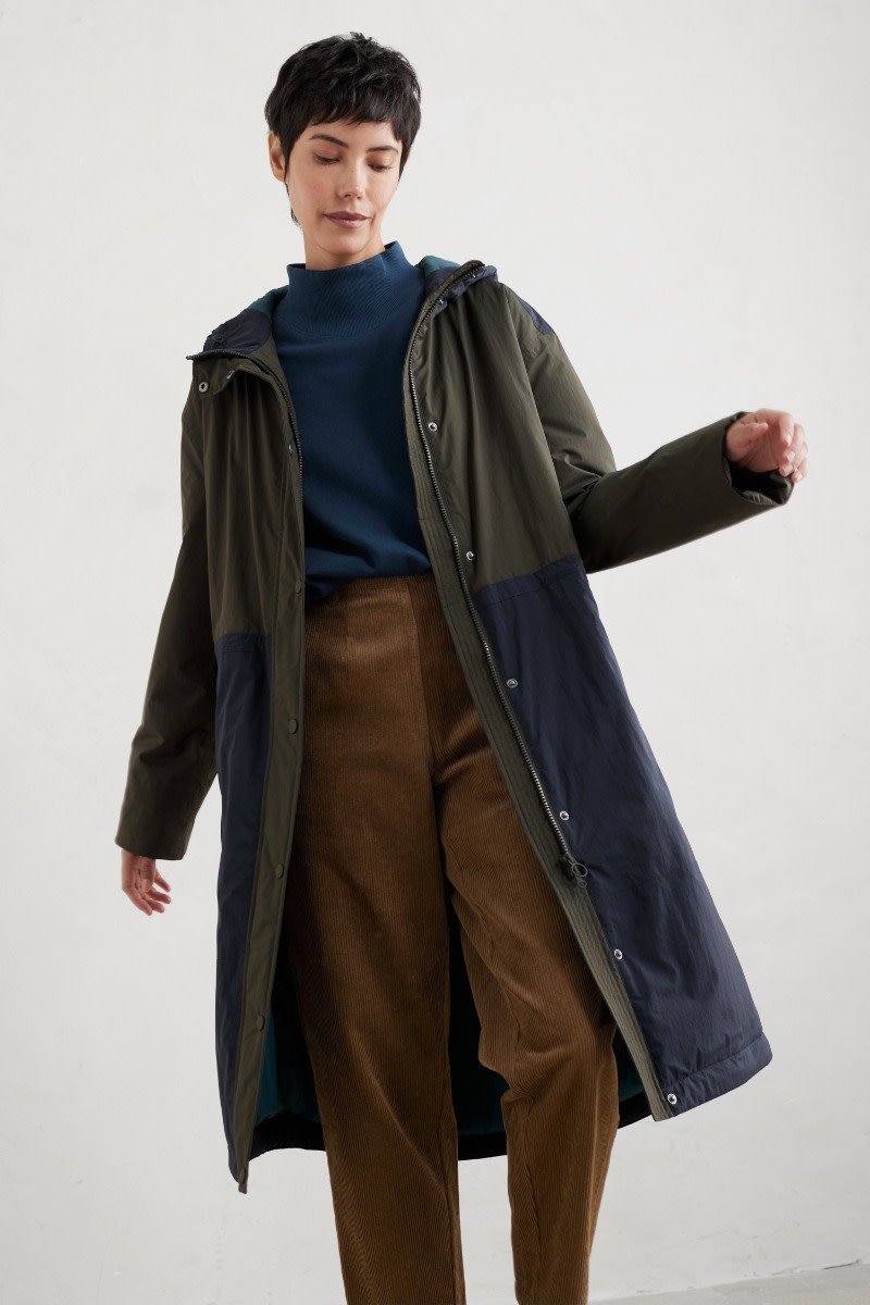 Our Chapel Rock waterproof coat combines technical features with distinctive two-tone design. Contrasting panels at the shoulder and below the waist create an instant style statement, while the parka-inspired design brings a retro feel. Wear it loose over layers, or pull it in at the waist with the drawcord for a more fitted shape. Fully taped seams, storm cuffs and reverse entry welt pockets keep out the rain.