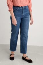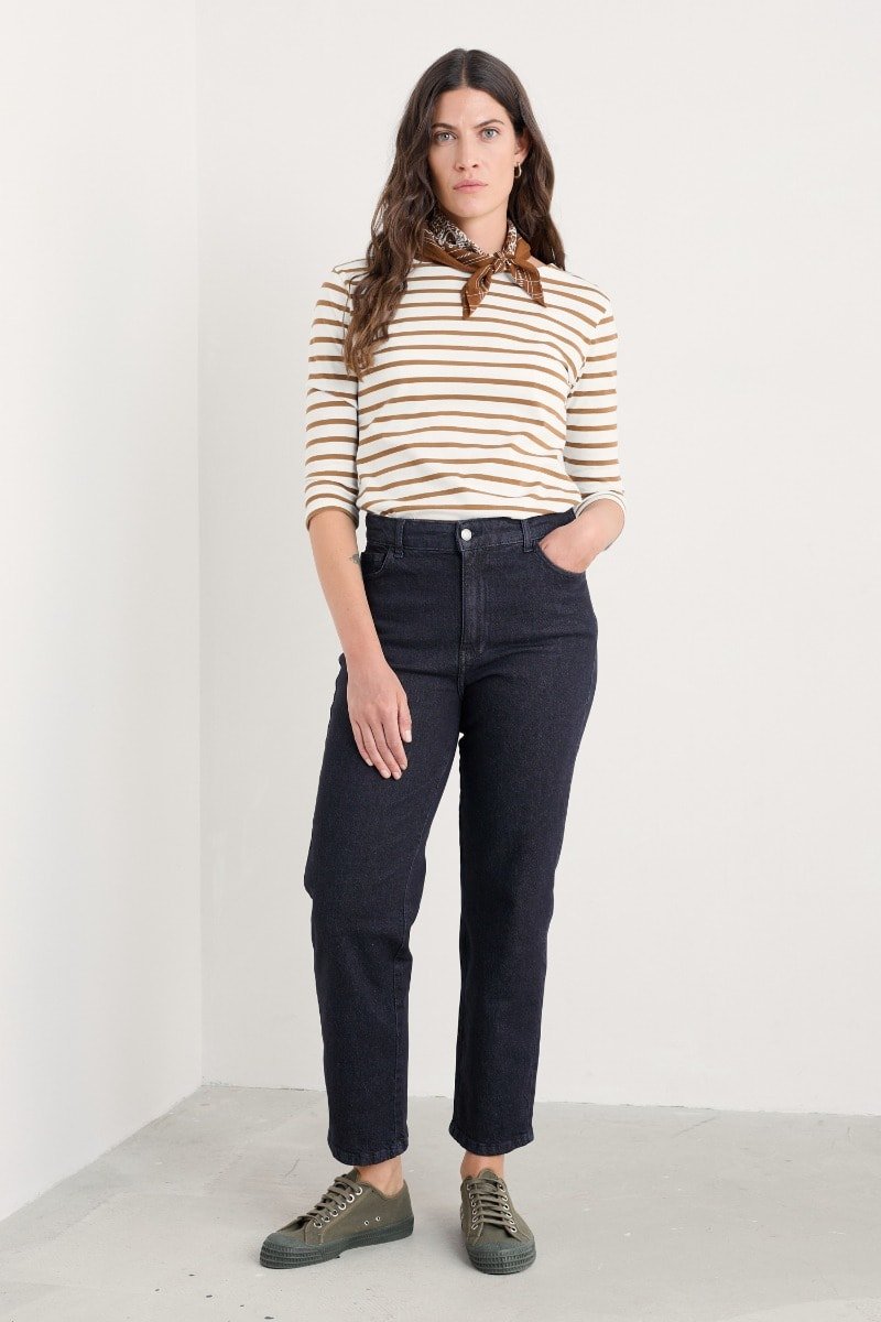 Timeless and easy-wearing, our mid-rise Penwith jeans are an everyday wardrobe essential. The straight-leg fit is relaxed and contemporary, and the reshaped yoke gives the jeans a flattering fit. They’re made from soft organic cotton denim with just a dash of stretch for extra wearable comfort. The back pockets are angled inwards for a flattering effect, enhancing the waisted shape of the jeans. Finished with time-honoured denim details such as a branded metal button and belt loops.