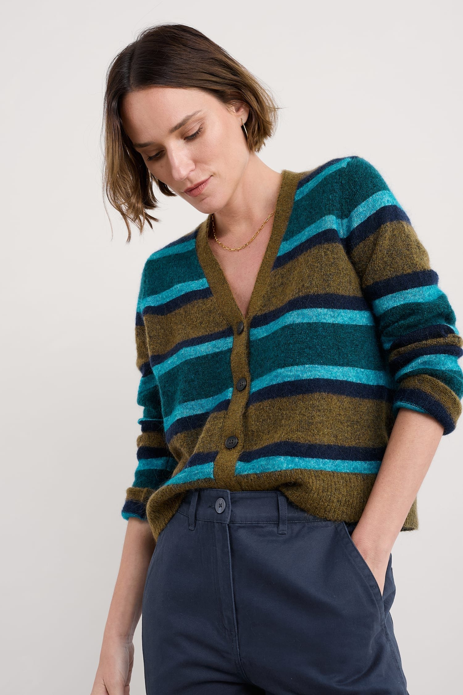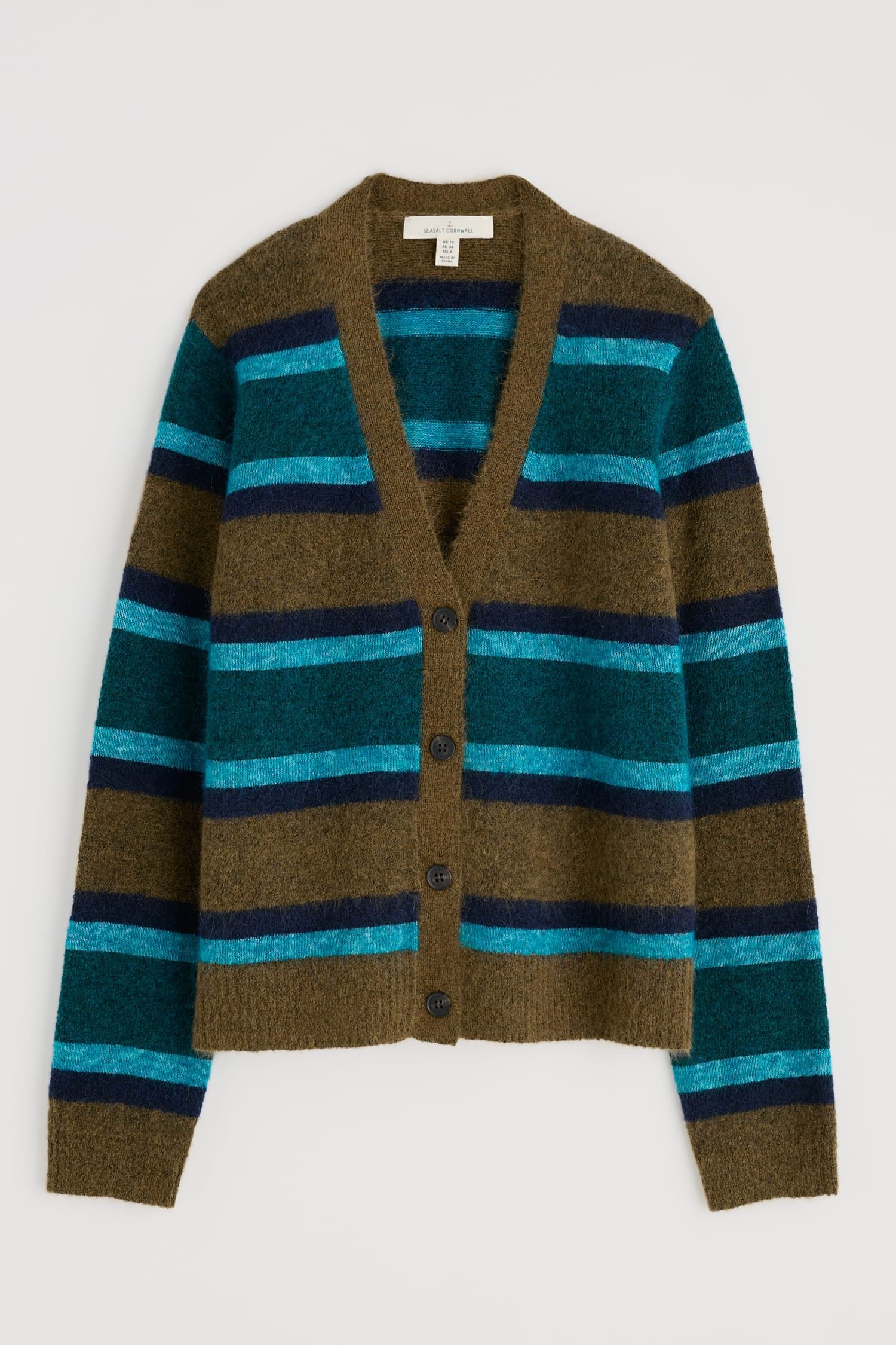 Crafted from a soft and subtly fluffy Mohair blend, our Etching cardigan has a luxuriously supple handfeel. Its 7-gauge knit will keep you warm, and we’ve added stretch to the blend for a comfortable fit. The V-neck gently curves into a four-button placket, while the deep ribs at the hem and cuffs create an extra little detail. An elevated take on layering, bringing easy colour to your wardrobe.