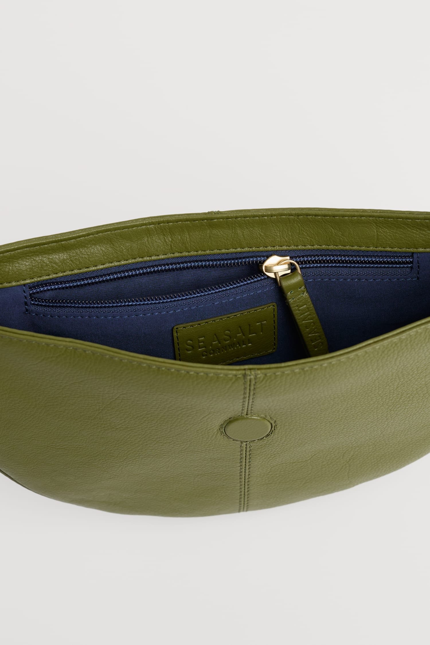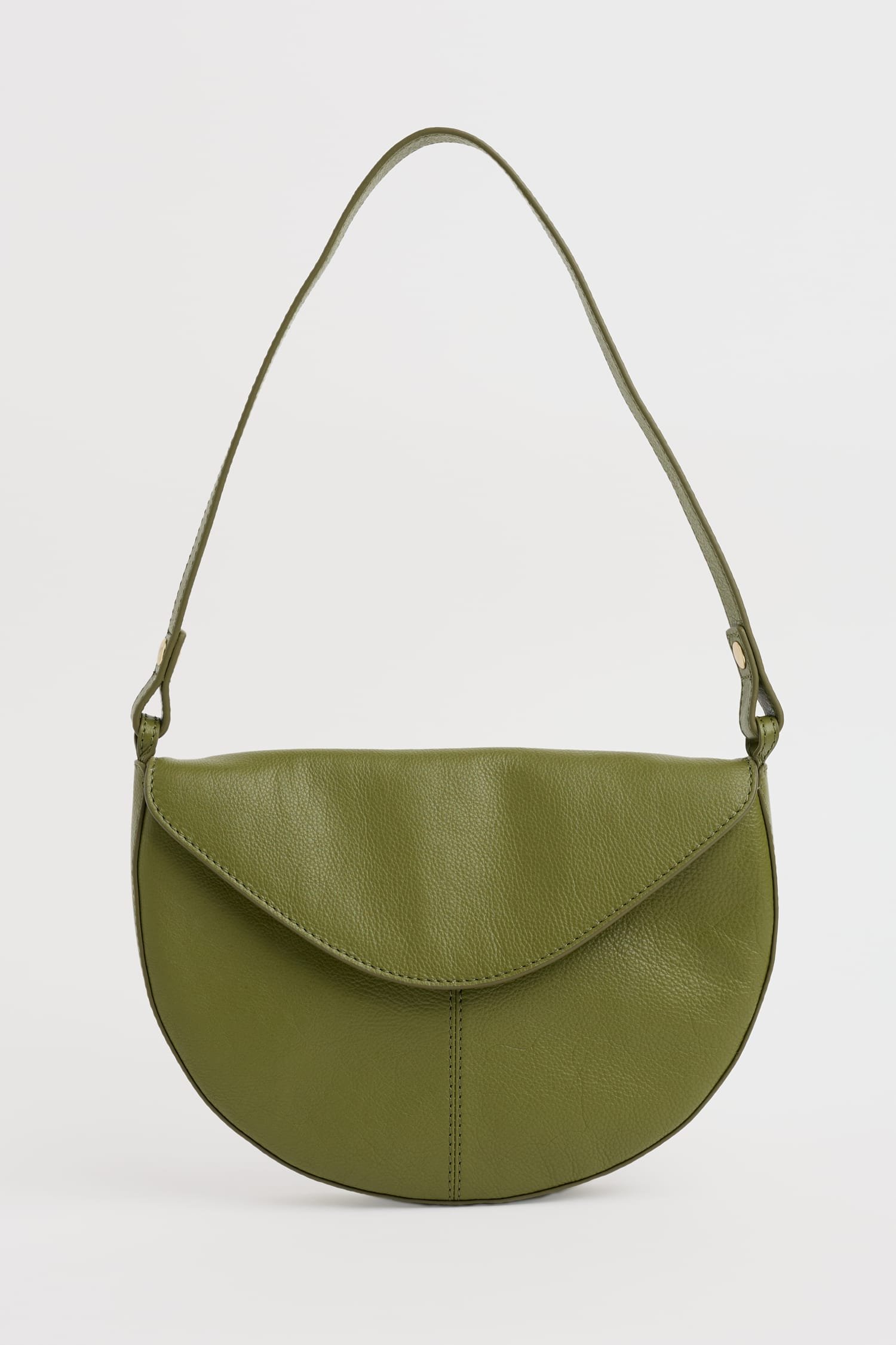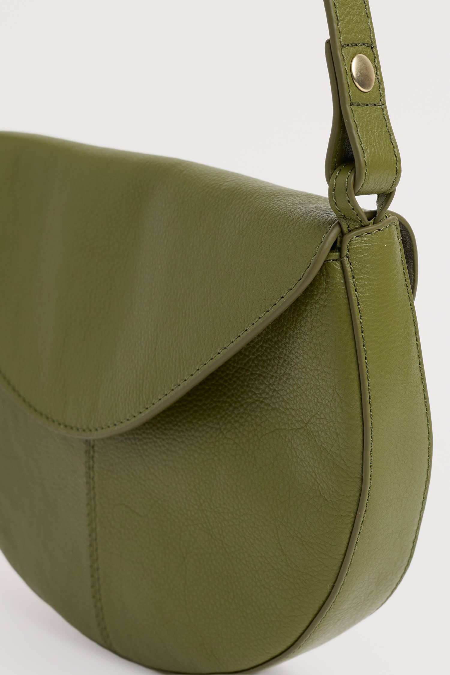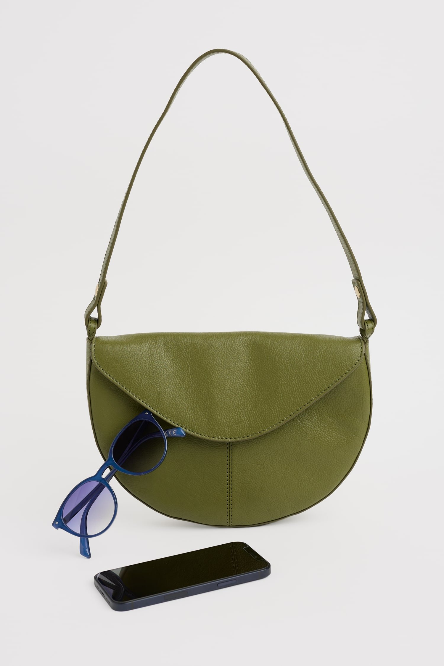 A stylish shoulder bag with a neat, semi-circular shape, crafted from fine LWG leather. The classic front flap conceals the easy-to-use popper fastening, and inside, there’s a useful slip pocket and recycled polyester lining in a smart contrasting colour. The leather strap is non-adjustable for a clean finish.