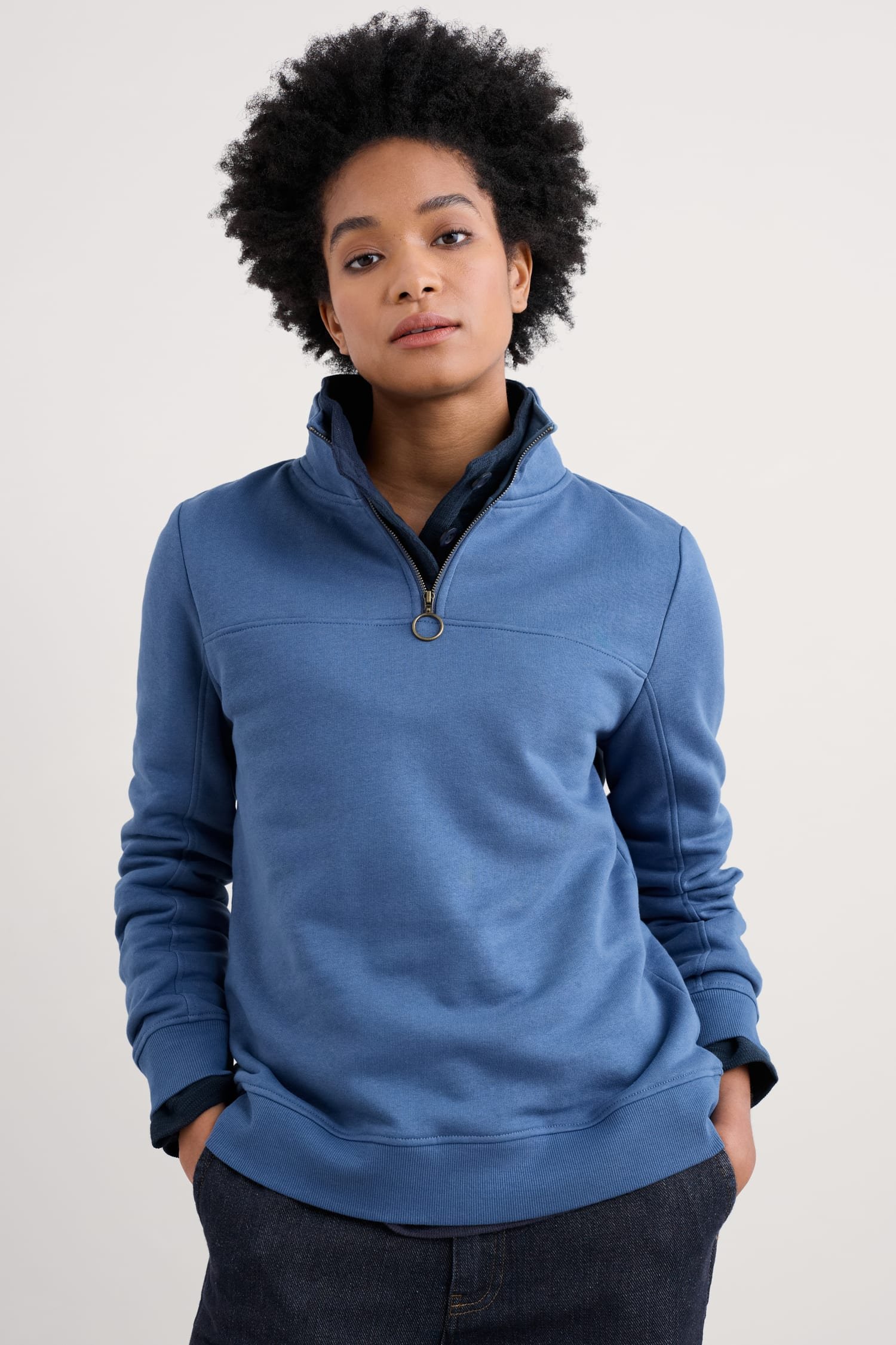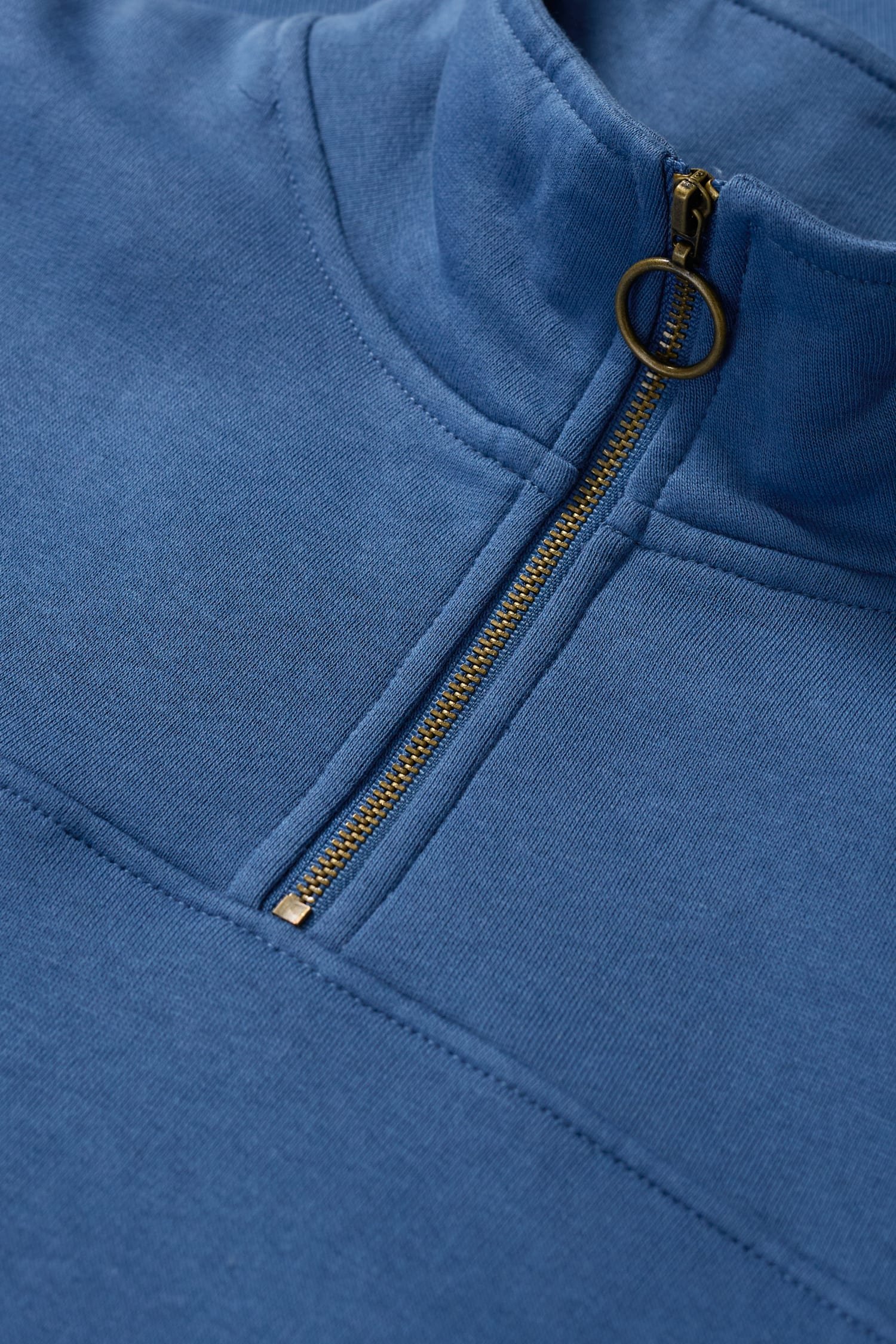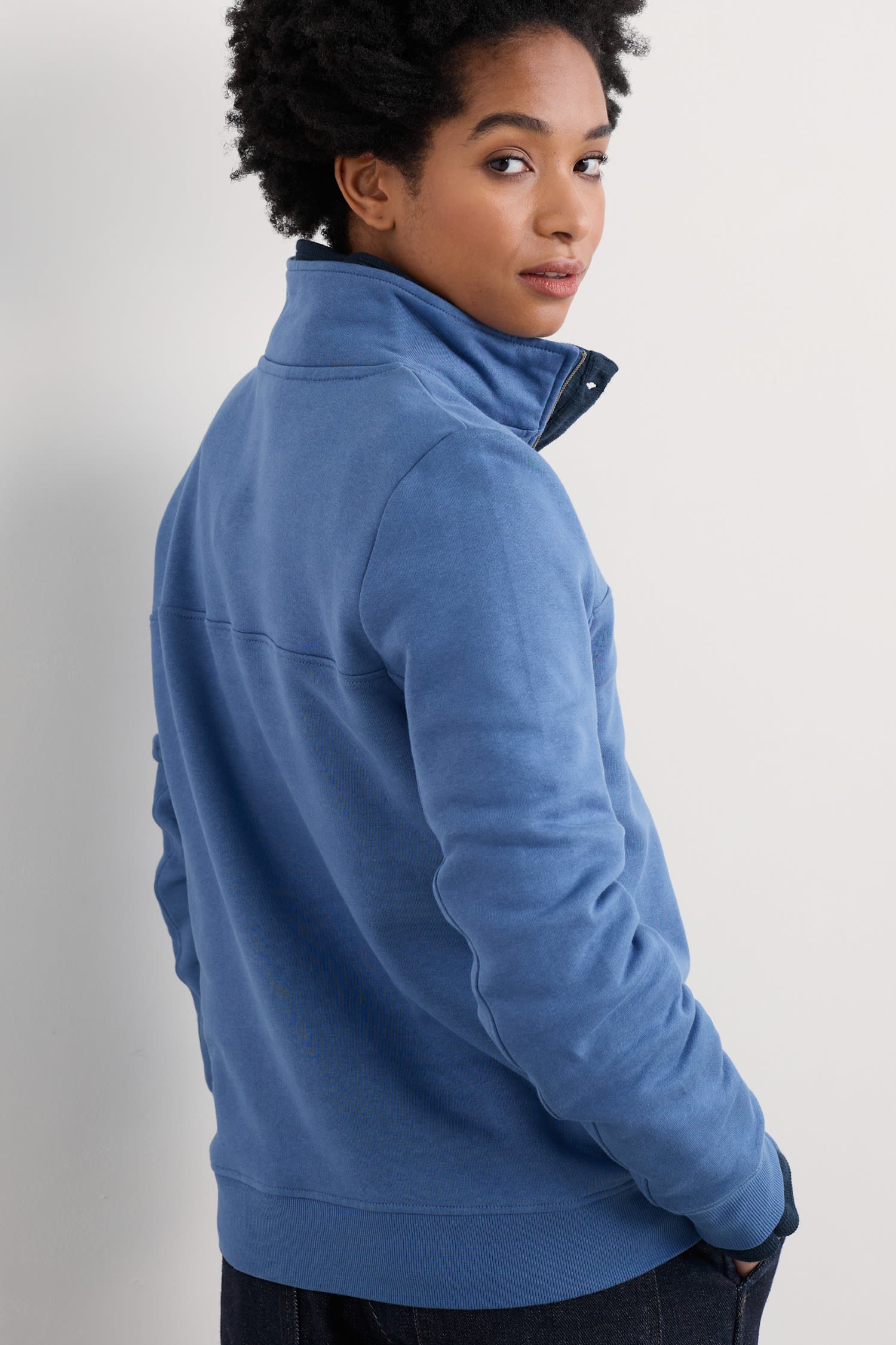 Perfect for weekend walks and off-duty days, our Navigation Sweatshirt is made from organic cotton jersey with a soft brushback finish. The quarter-zip finishes with a round pull, and can be worn open as a v-neck or fastened to the top of the stand collar for extra cosiness. Stitched panel detailing and ribbed trims bring neat finishing touches.