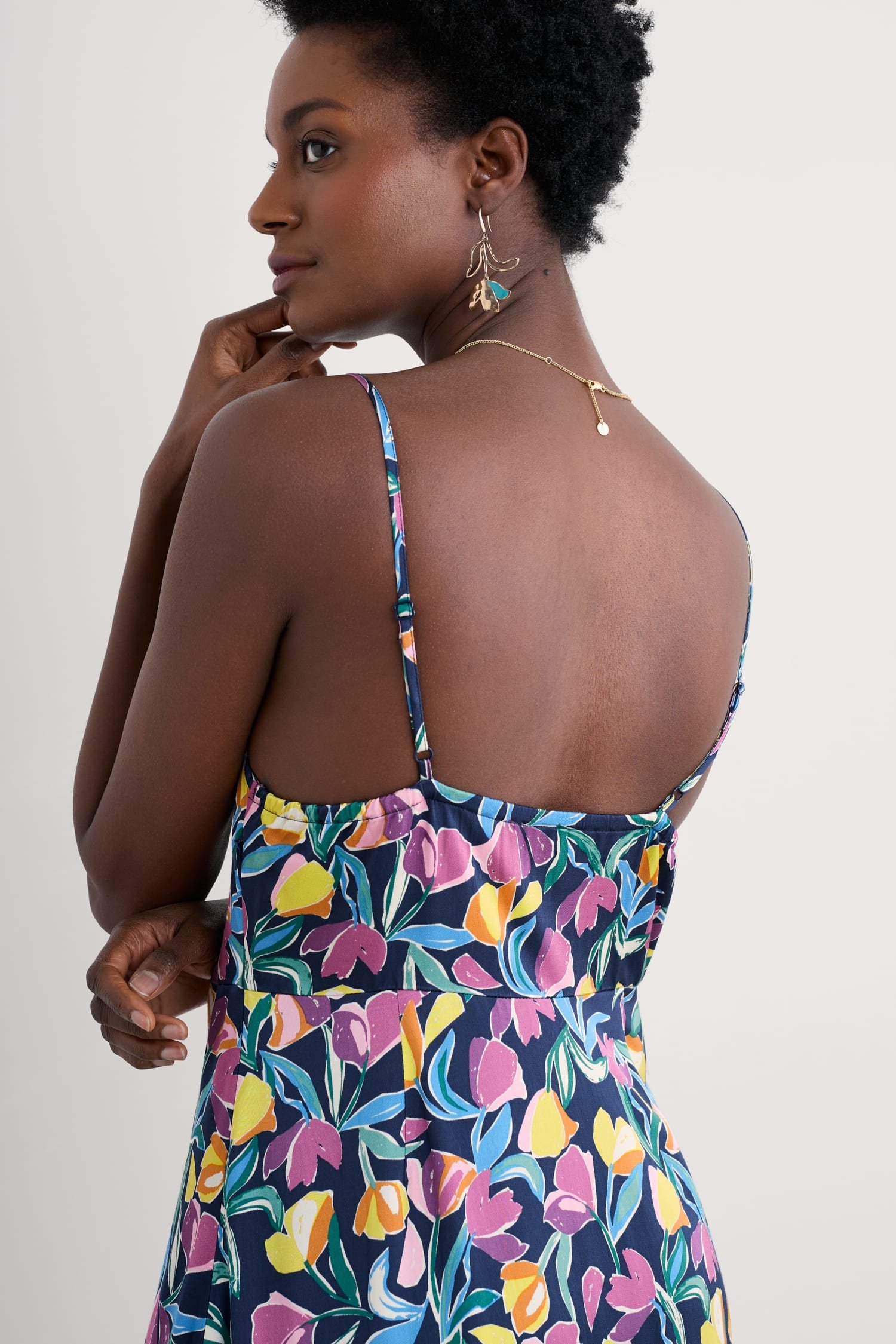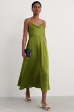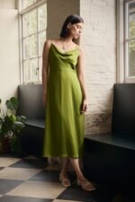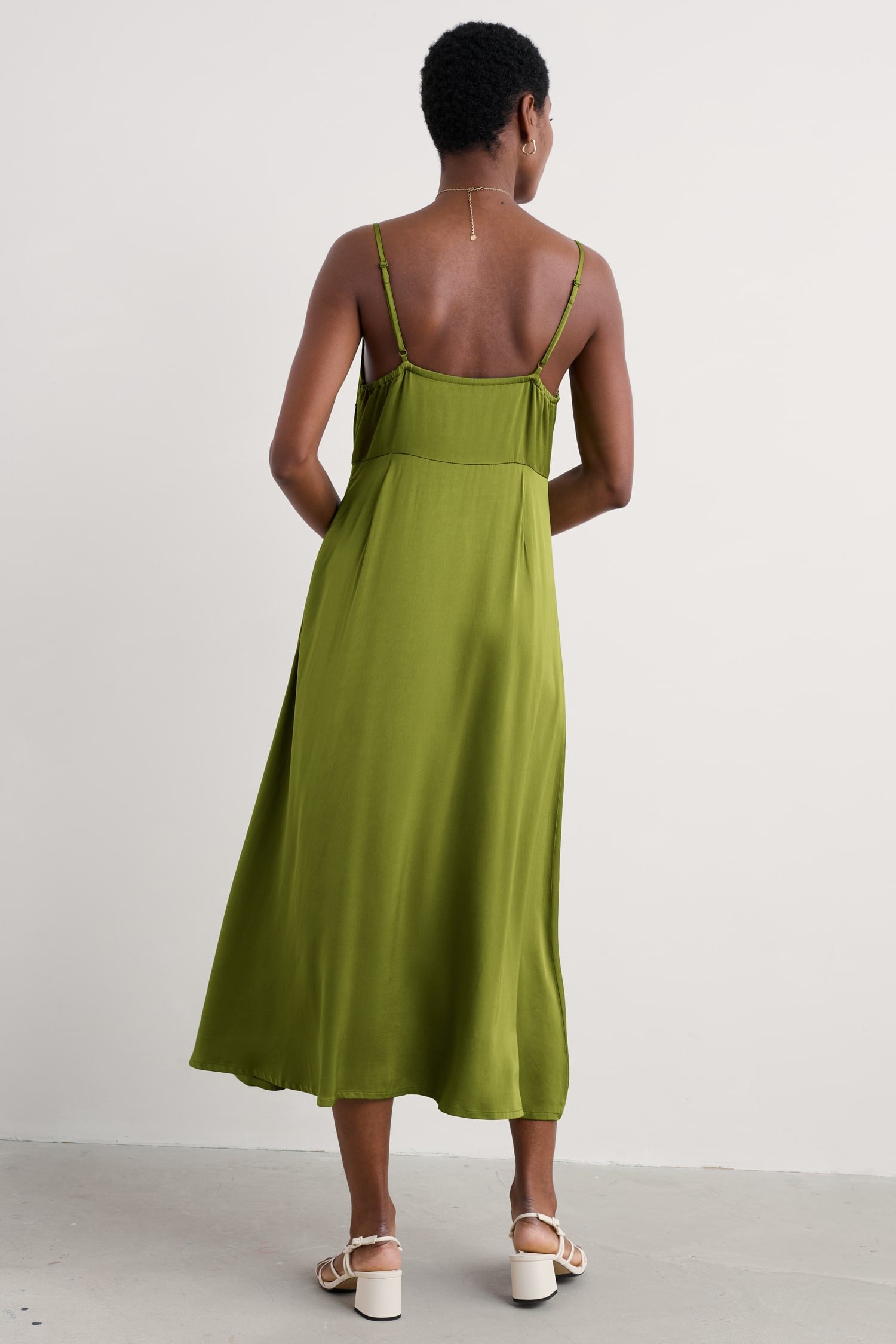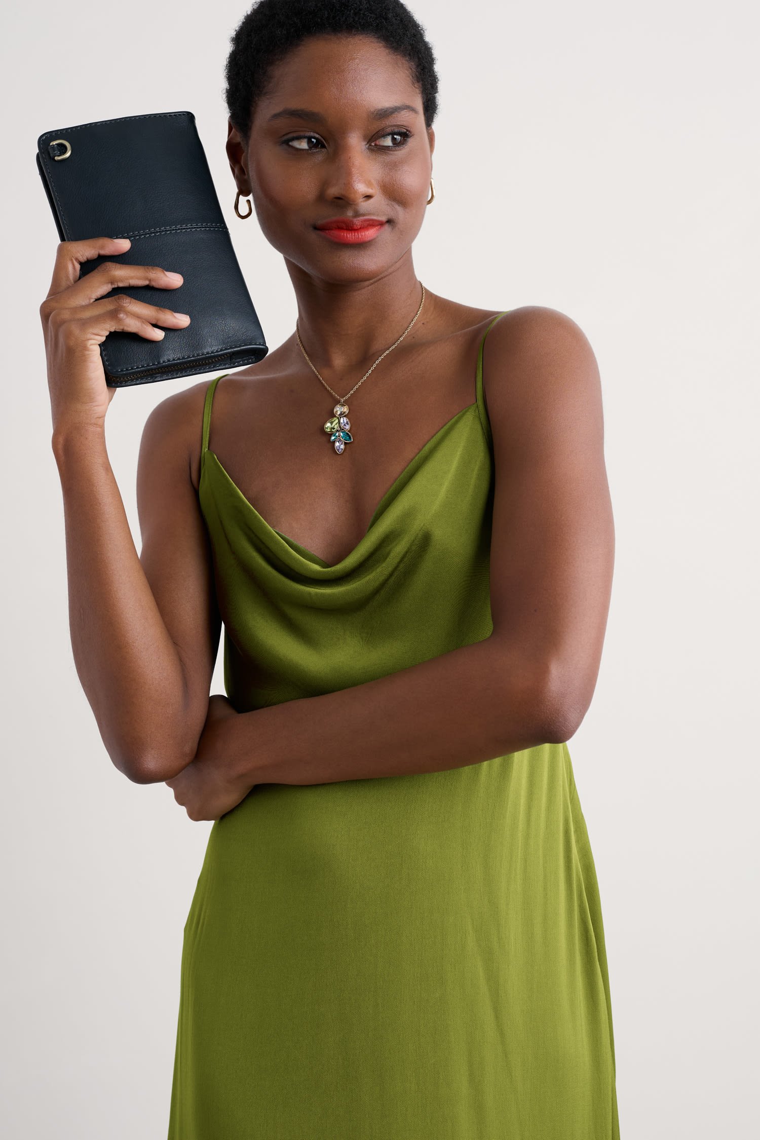 Our Housel Bay cami dress is made from drapey satin viscose, with a body-skimming slim fit and an elegant empire line cut. Its strappy bodice features bust darts for shaping, softened by the subtle cowl-shape neckline. The gently swaying skirt becomes fuller towards the midi-length hem. A beautiful piece for all kinds of summer occasions.