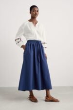The perfect piece for warmer days, the Lake Skirt is made from GOTS-certified organic cotton with a cool and lightweight poplin weave. The ankle-length skirt is full for a floaty feel, and the elasticated waist makes it a comfortable choice for day-long wear. We’ve finished it with a self-fabric waist tie and those always-appreciated side pockets.