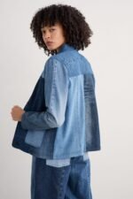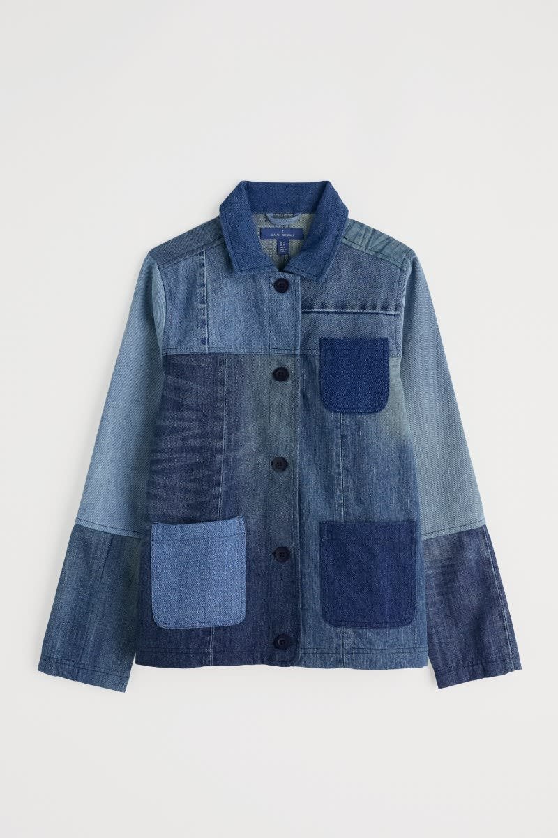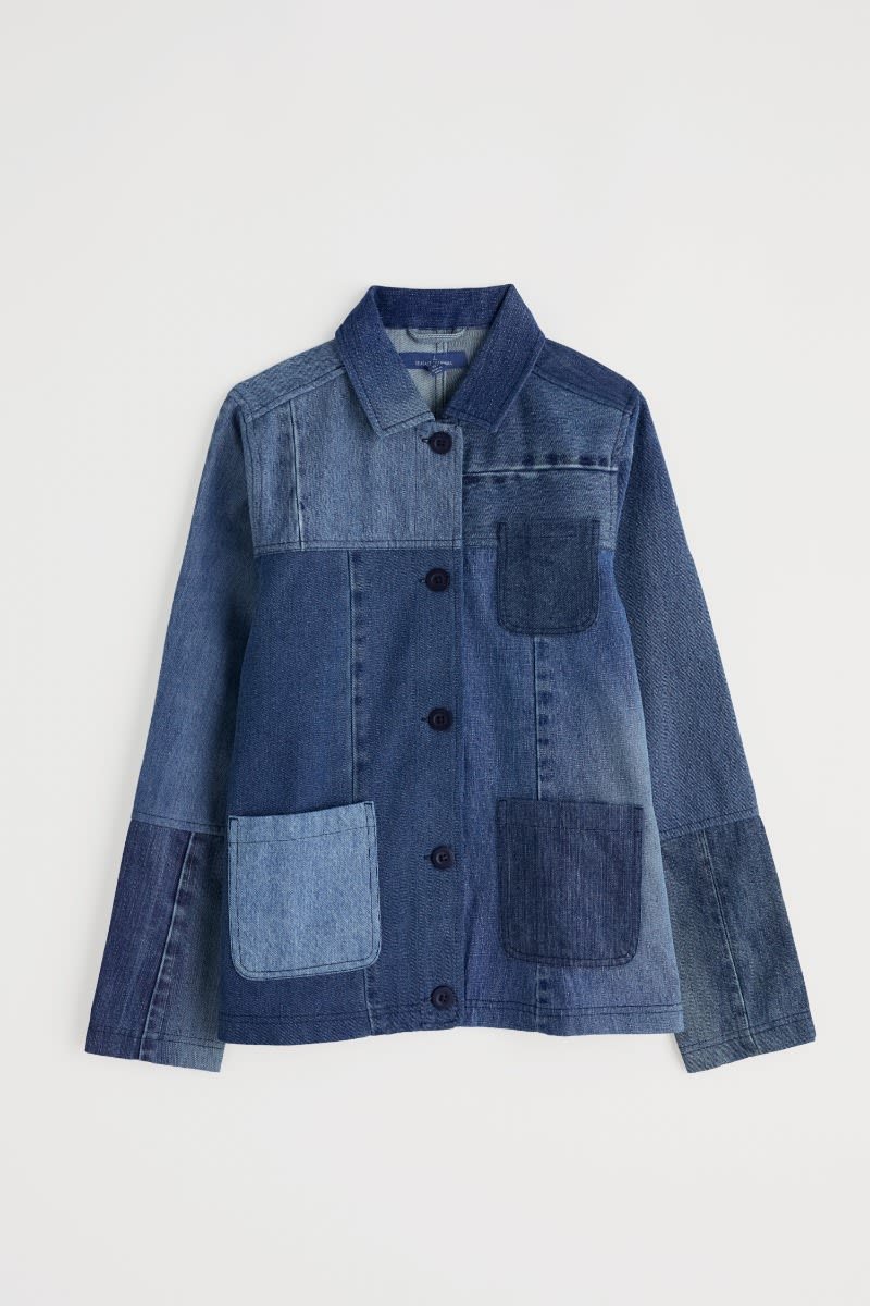 Inspired by traditional workwear, the denim jacket features generous patch pockets and a neat collar, in a relaxed fit that’s easy to wear and layer. Each individual jacket features its own unique pattern of denim washes, tones and textures. An original statement piece, crafted with repurposed denim to reduce textile waste within the clothing industry.