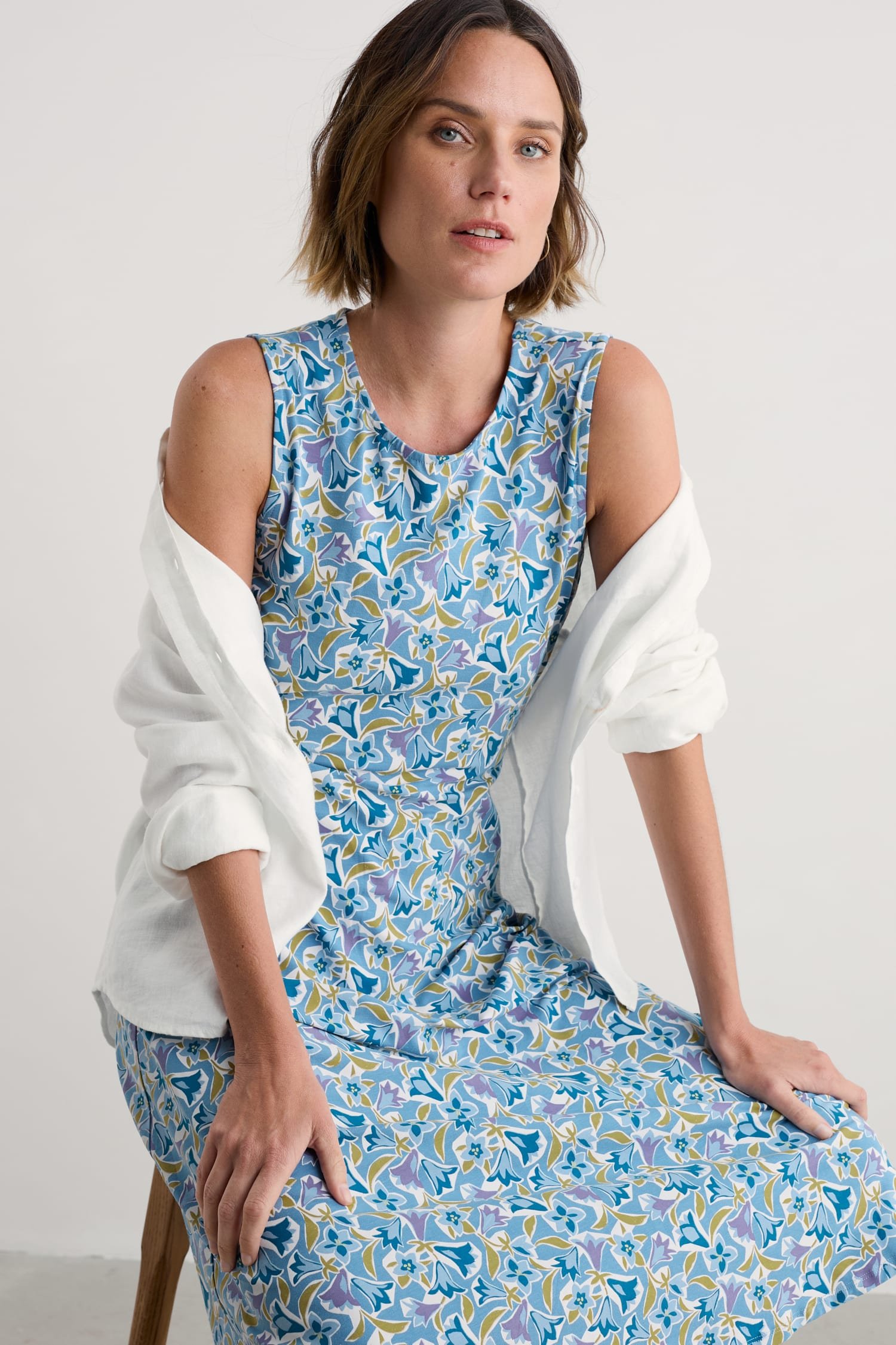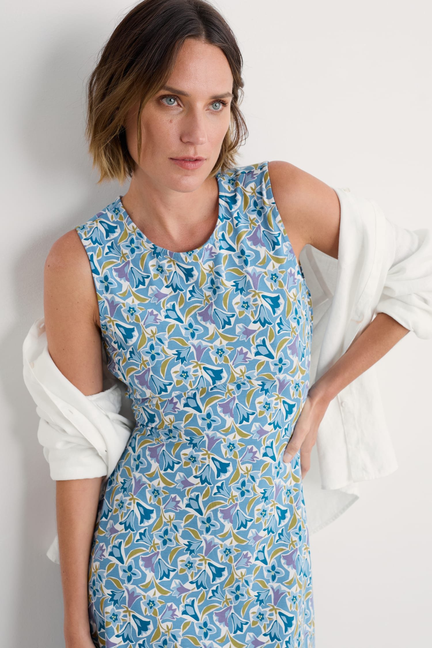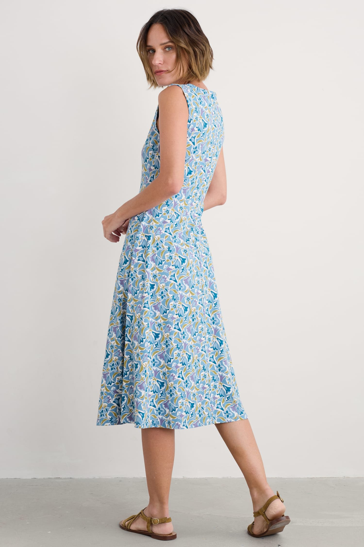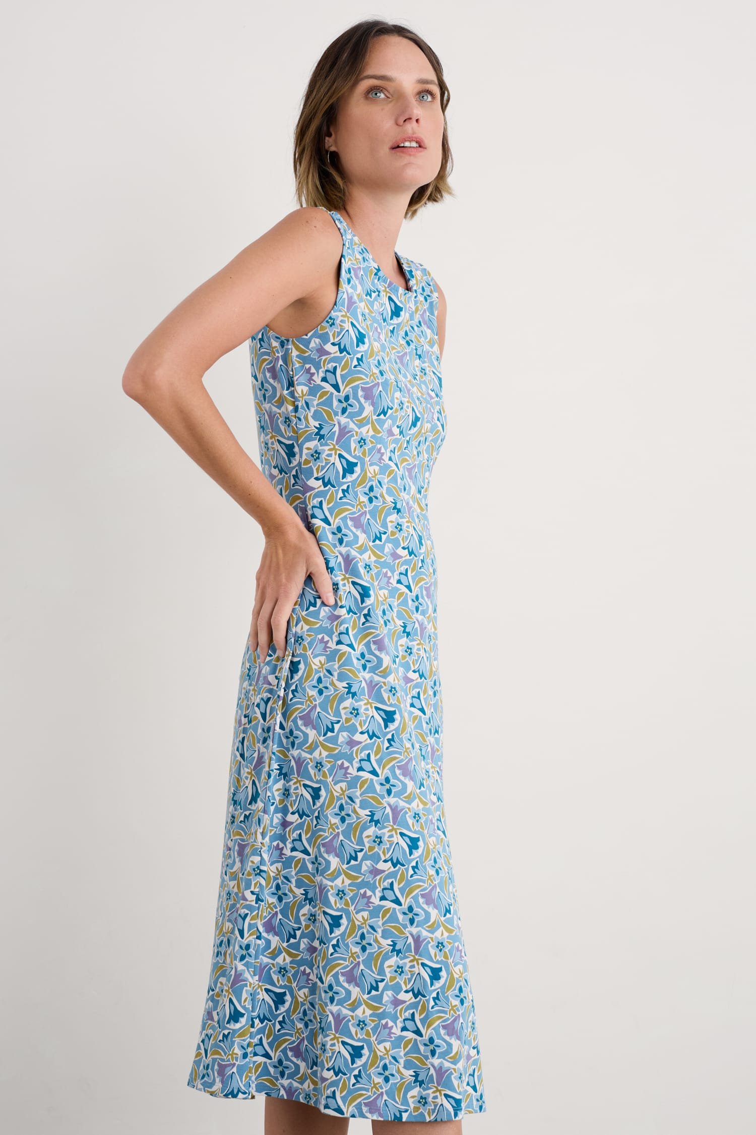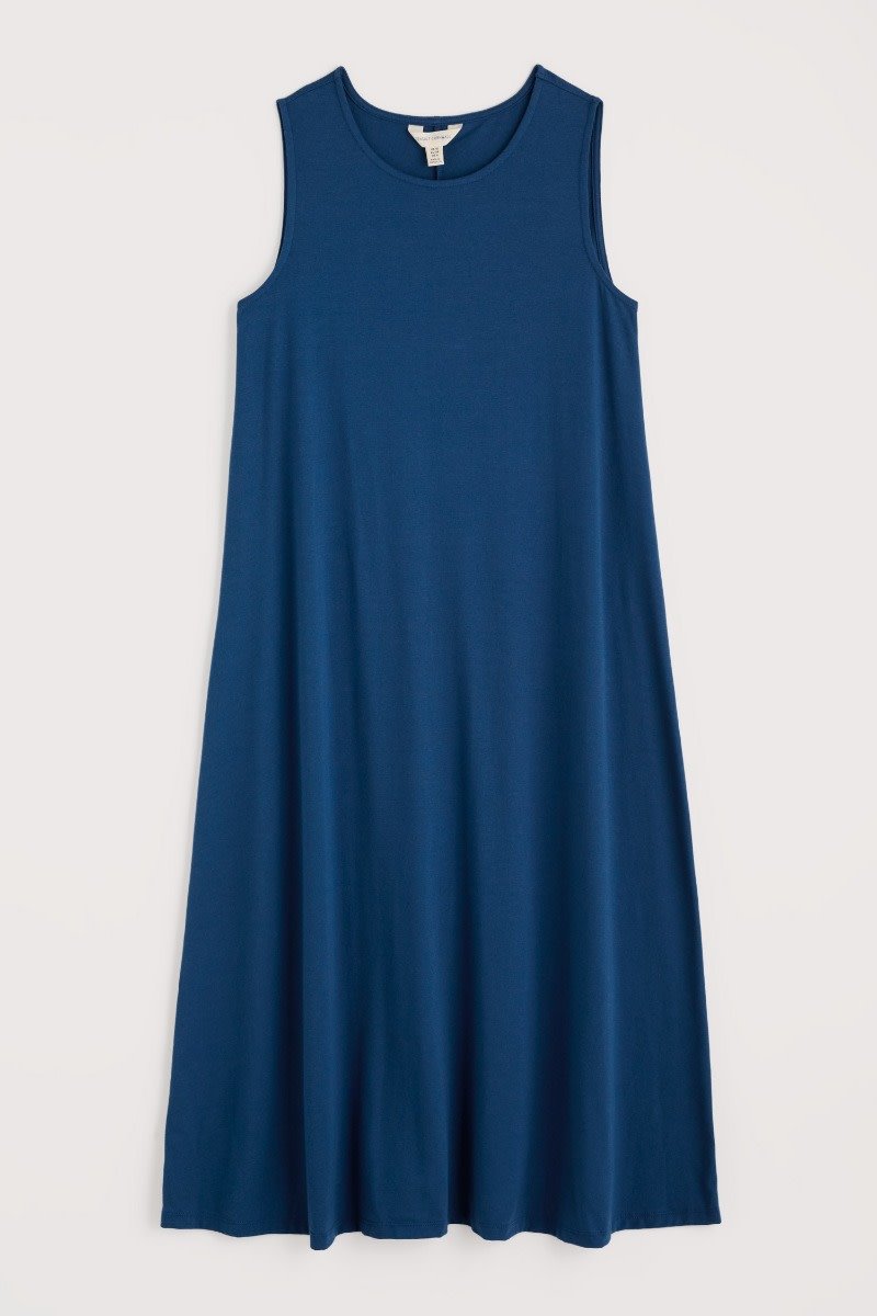 A timeless dress for summer made from a soft jersey blend. The slim-fitting sleeveless dress flares out towards the midi-length hem, and we’ve added a touch of stretch for comfort and fit. A soft scoop neckline completes the lovely simplicity of this versatile piece.