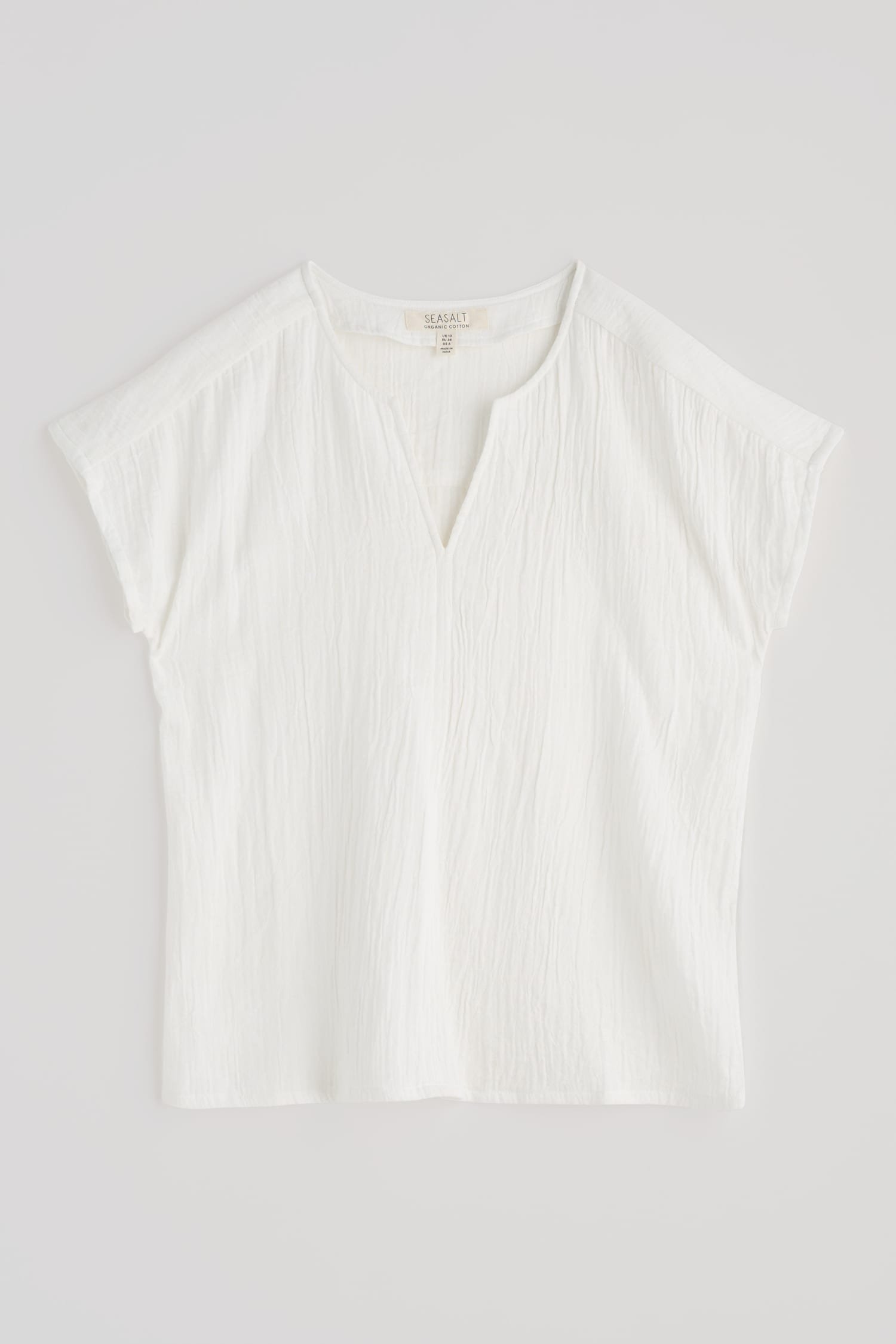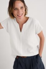 A relaxed, swing-shape top for warm summer days, made from cool and breathable GOTS-certified organic cotton. We’ve used double cotton gauze, which creates a lovely soft drape as well as giving the fabric a subtle texture. The grown-on sleeves have a loose and airy feel, while the notch neckline adds a pretty finishing touch.