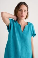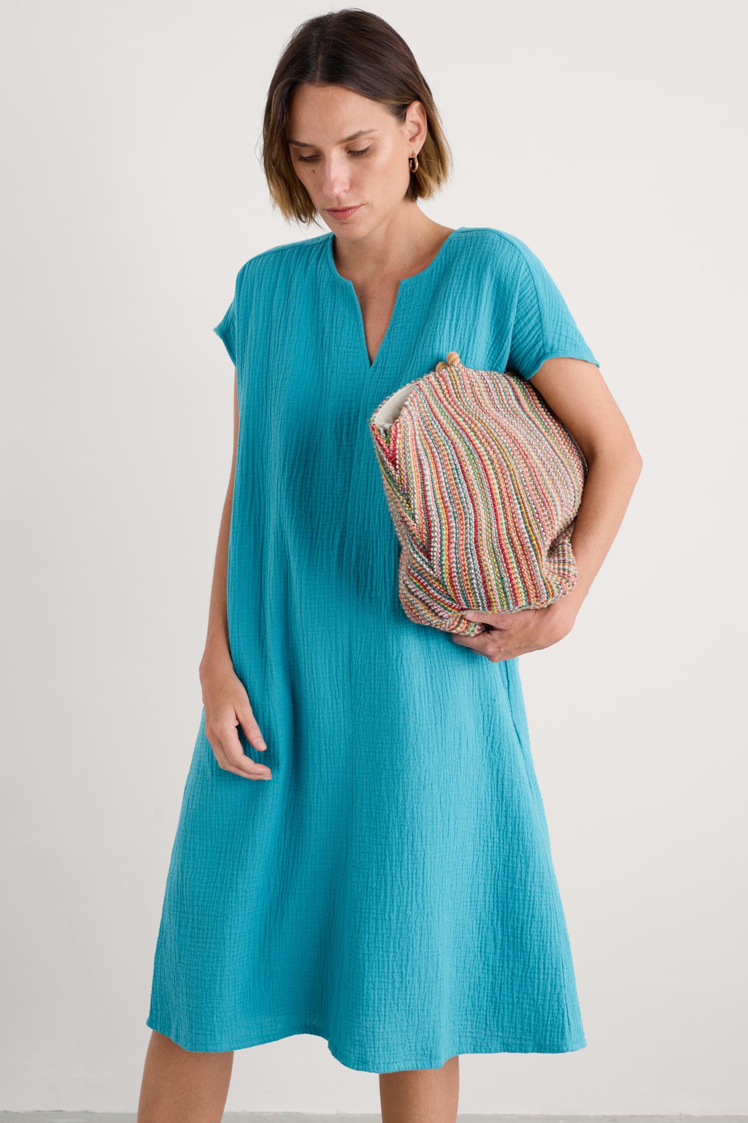 Just made for relaxed summer days. Our Sand Patterns Dress is crafted from woven GOTS-certified organic cotton. Its lightweight double-gauze construction gives the dress a floaty feel and a subtle texture. We’ve finished it with a pretty notch neckline and a pair of in-seam pockets.