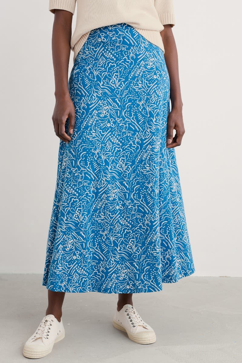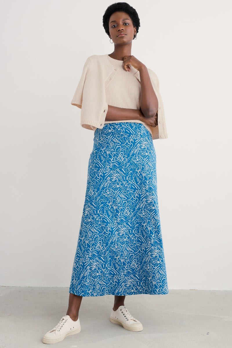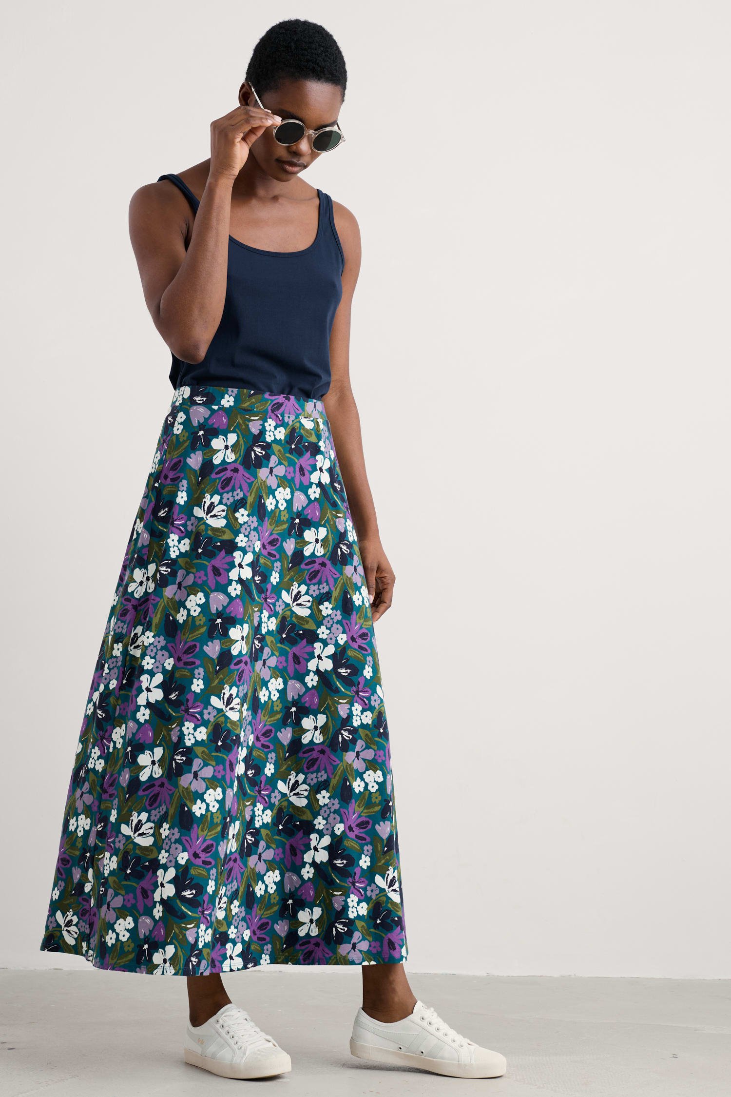The ankle-length version of our popular Rose Skirt. Designed for ease, the A-line skirt has a gentle, easy movement. Choose from a selection of seasonal prints and colours designed in our coastal Cornish studios.