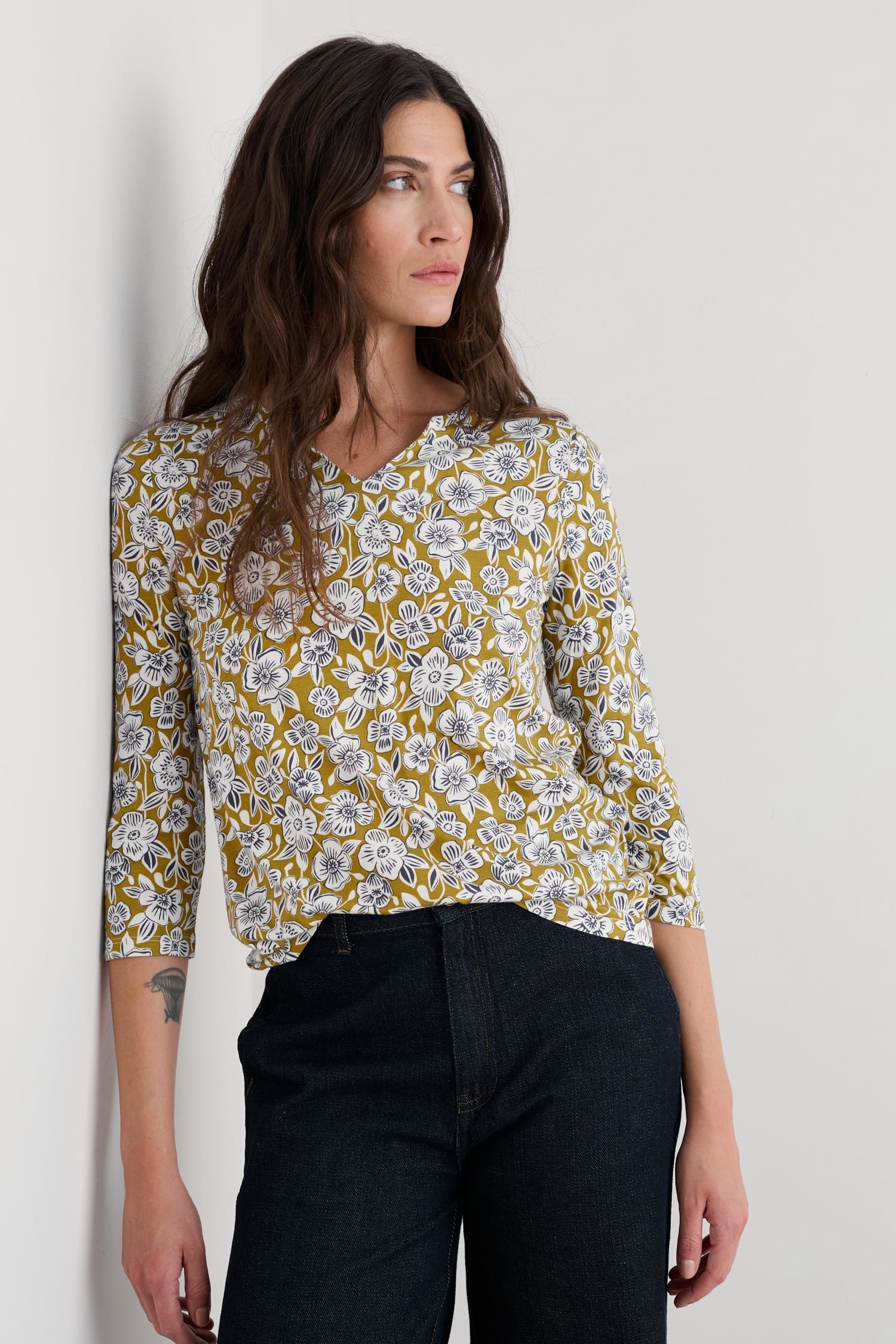 Crafted from a soft, breathable blend of bamboo-derived viscose and organic cotton, the Kellow Top is a layering wardrobe staple. We’ve given it a slim fit, ¾ length sleeves and slightly curved hem. The notch neckline elevates the style, great for layering beneath open jackets.