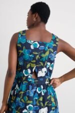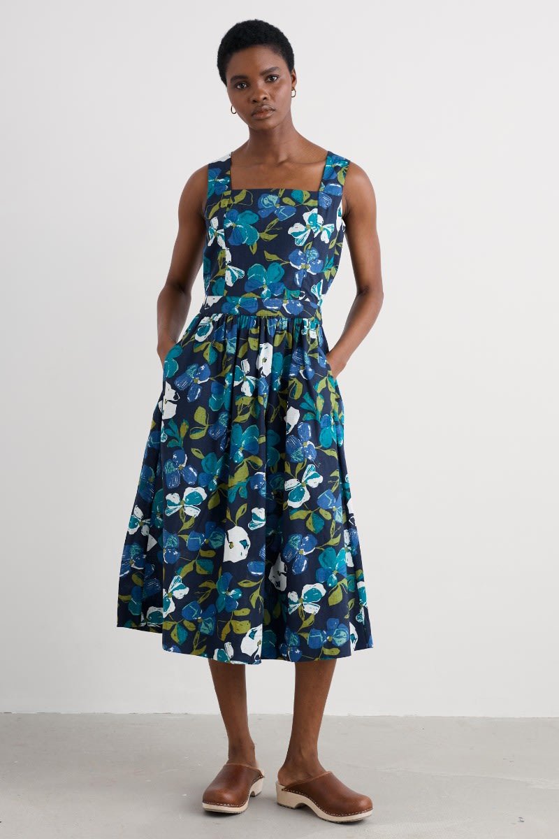 A woven fit-and-flare dress in traceable organic cotton. We’ve given the Shearwater a sophisticated square neckline and cut-out back detail. The skirt is gathered to create a full, swishy look that minimises the waist by floating outwards. It’s fully lined with organic cotton voile, and finished with hidden in-seam pockets.