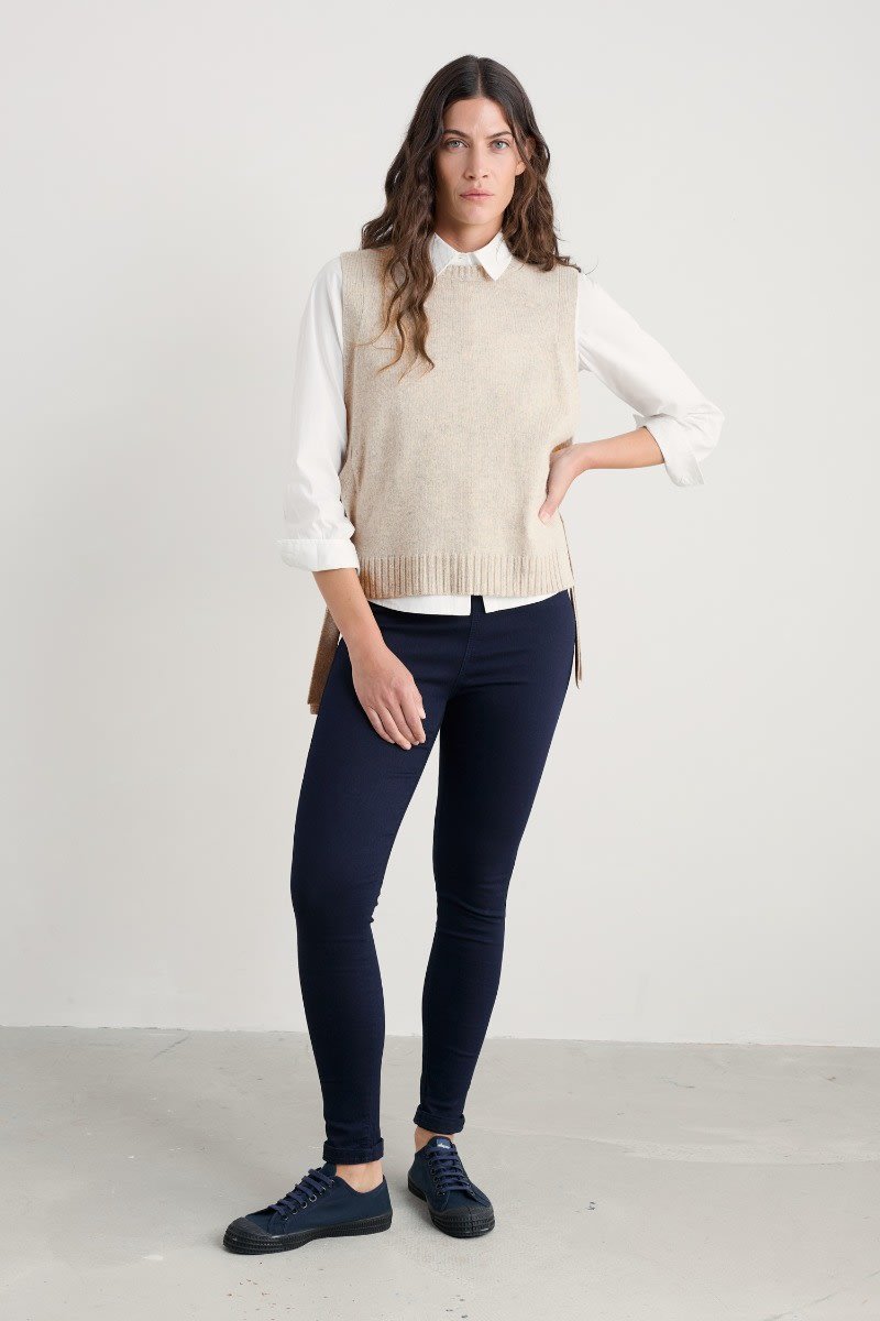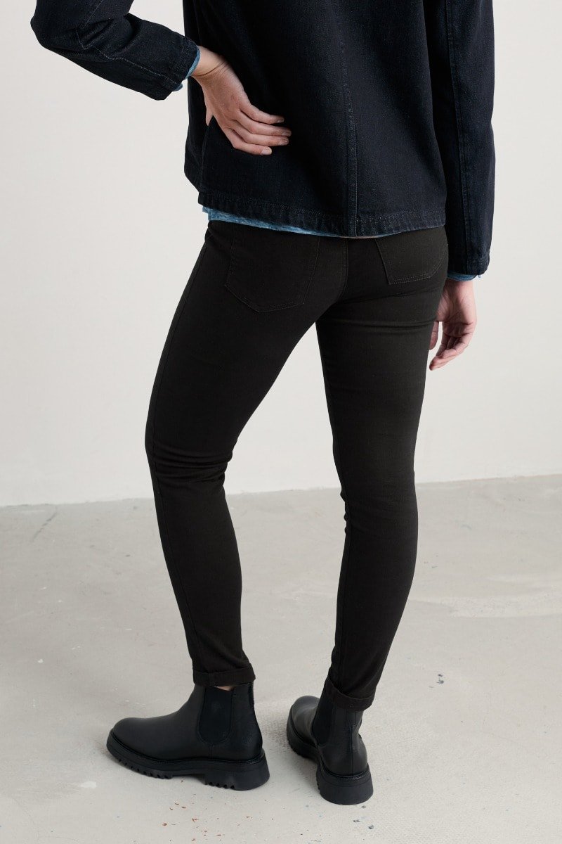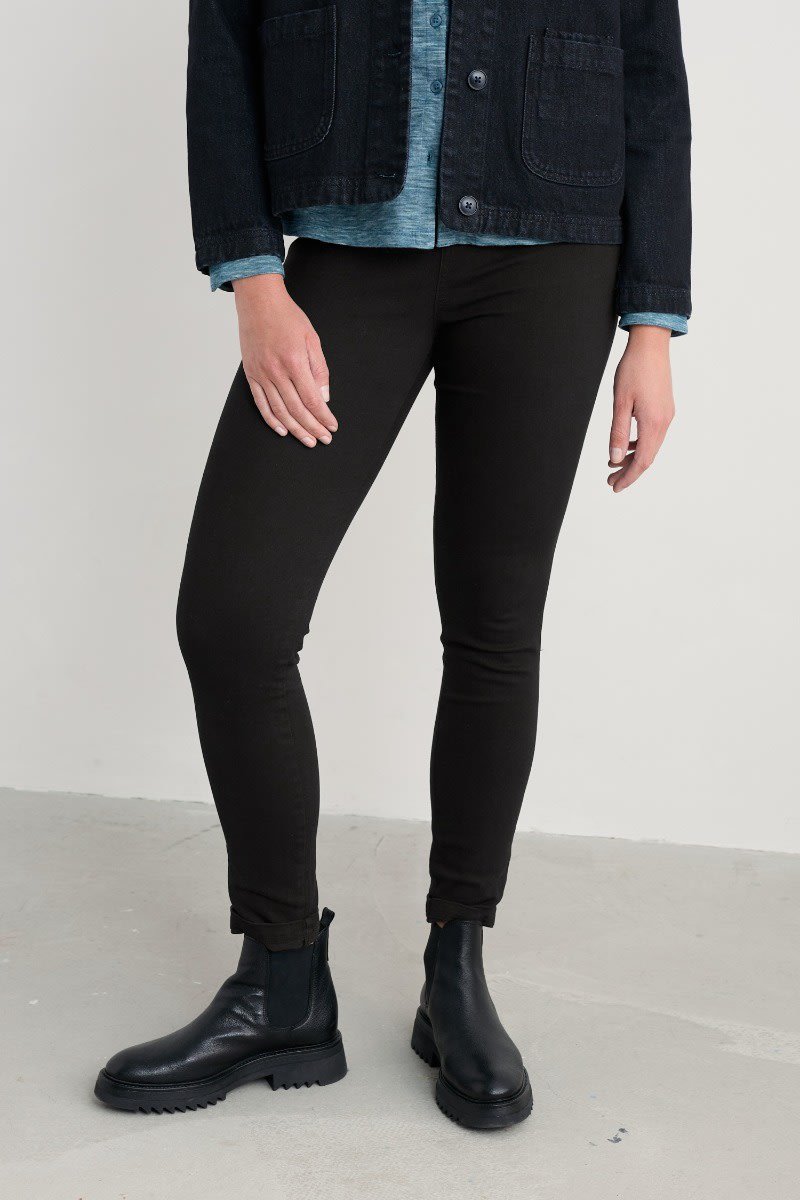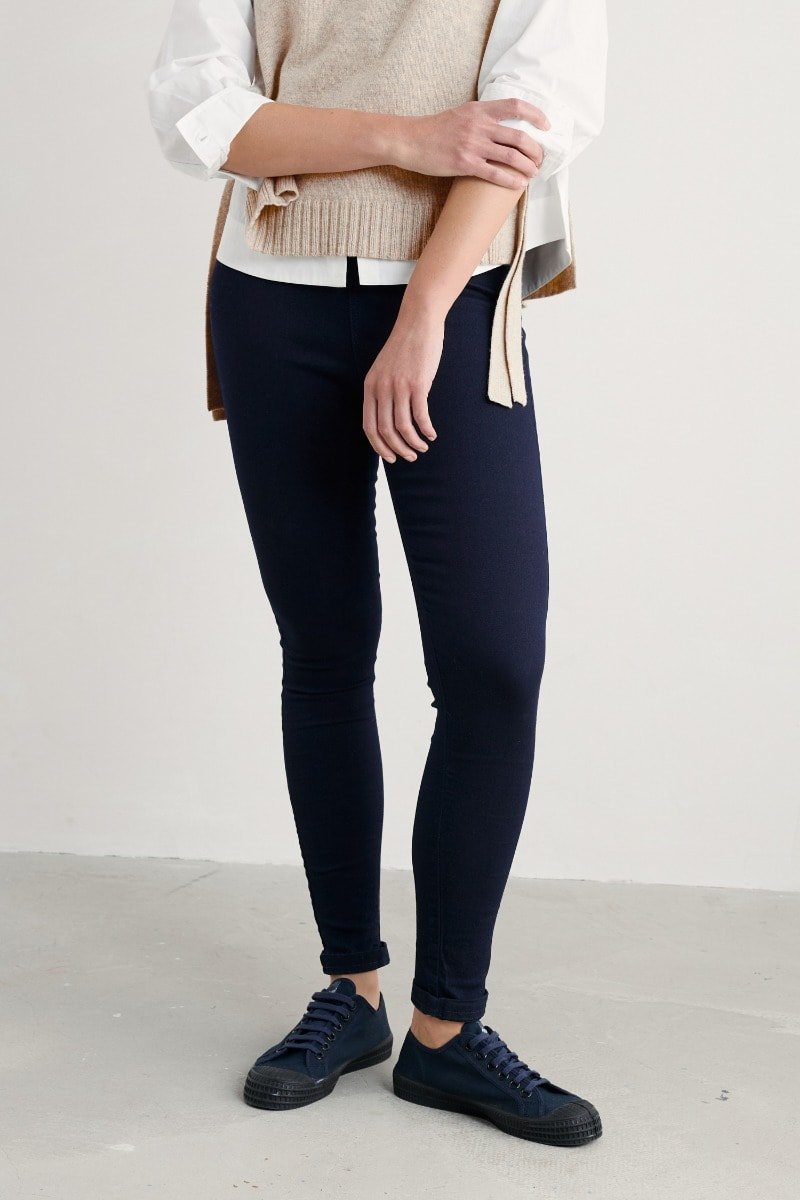 Combine the style of jeans with the comfort of leggings. Cut to a skinny fit to hold and hug with a high-rise pull-on waistband, while angled back pockets shape and lift. Made with organic cotton and extra stretch, these jeggings provide perfect structure and support. The perfect must-have essential for confident, contemporary style.