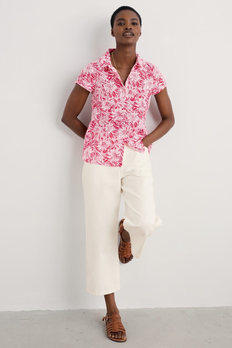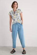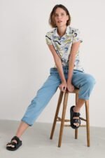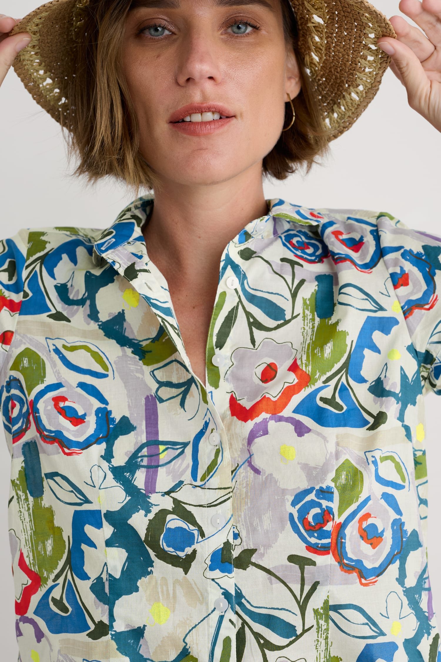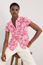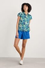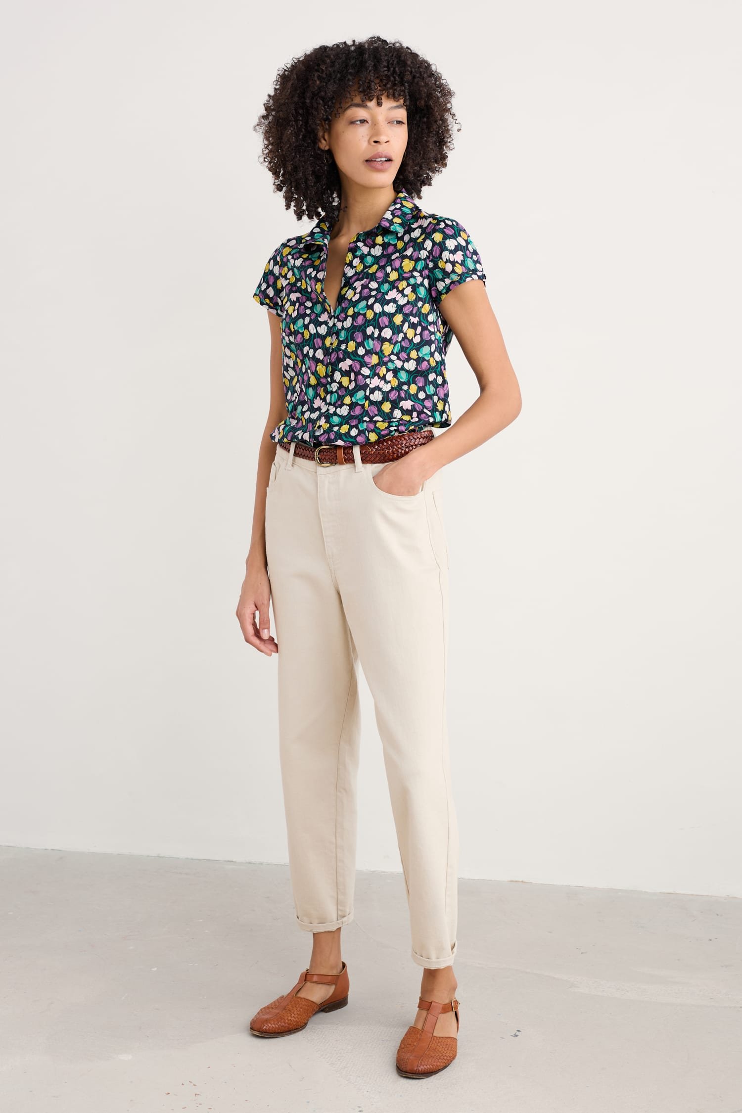 A pretty summer shirt in a unique Seasalt print, inspired by Cornwall. Our Rushmaker Shirt is a more structured way to wear our prints. This semi-fitted style is made from airy cotton voile, with a rounded collar and cap sleeves with sweet keyhole details. We love it with crops or loose linen trousers and flat leather sandals.