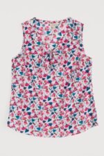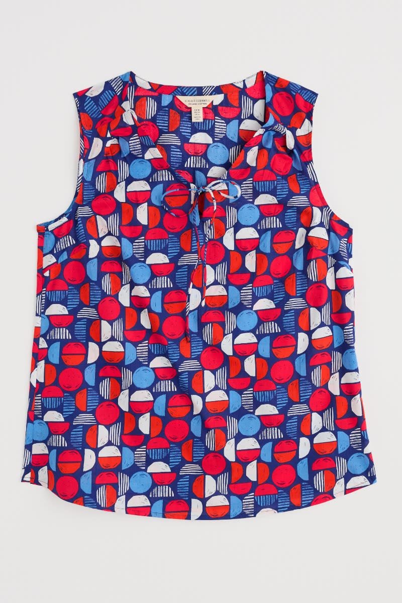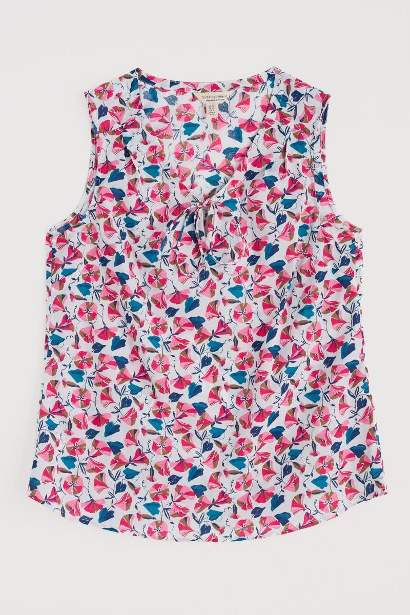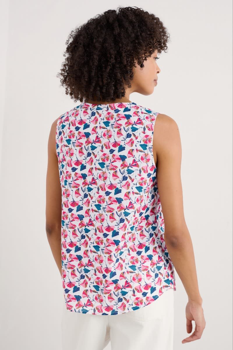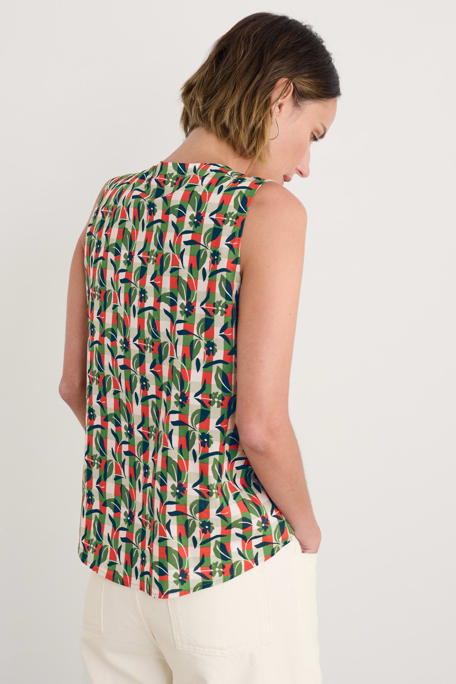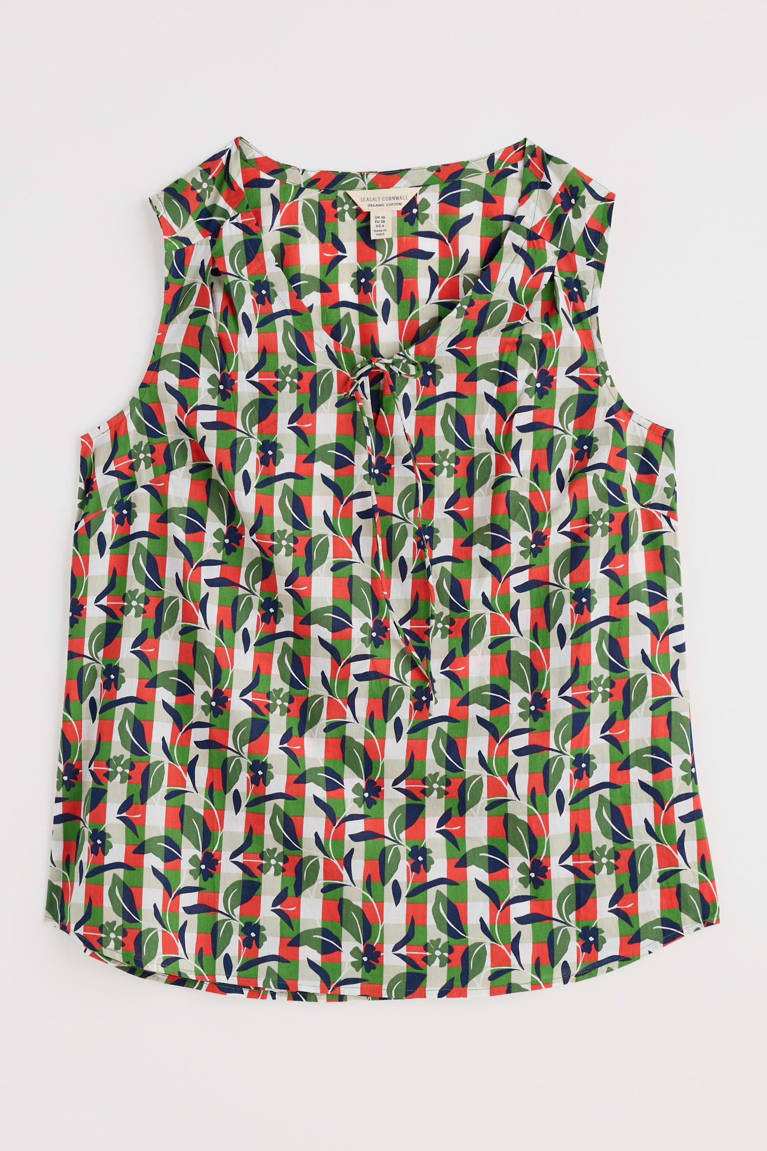 A cool and airy sleeveless top in a fresh Seasalt print. Our Cobbs Well Top has a pretty V-neck with keyhole detail and fine rouleau ties. Team it with linen crops and colourful flat leather sandals for effortless summer style.