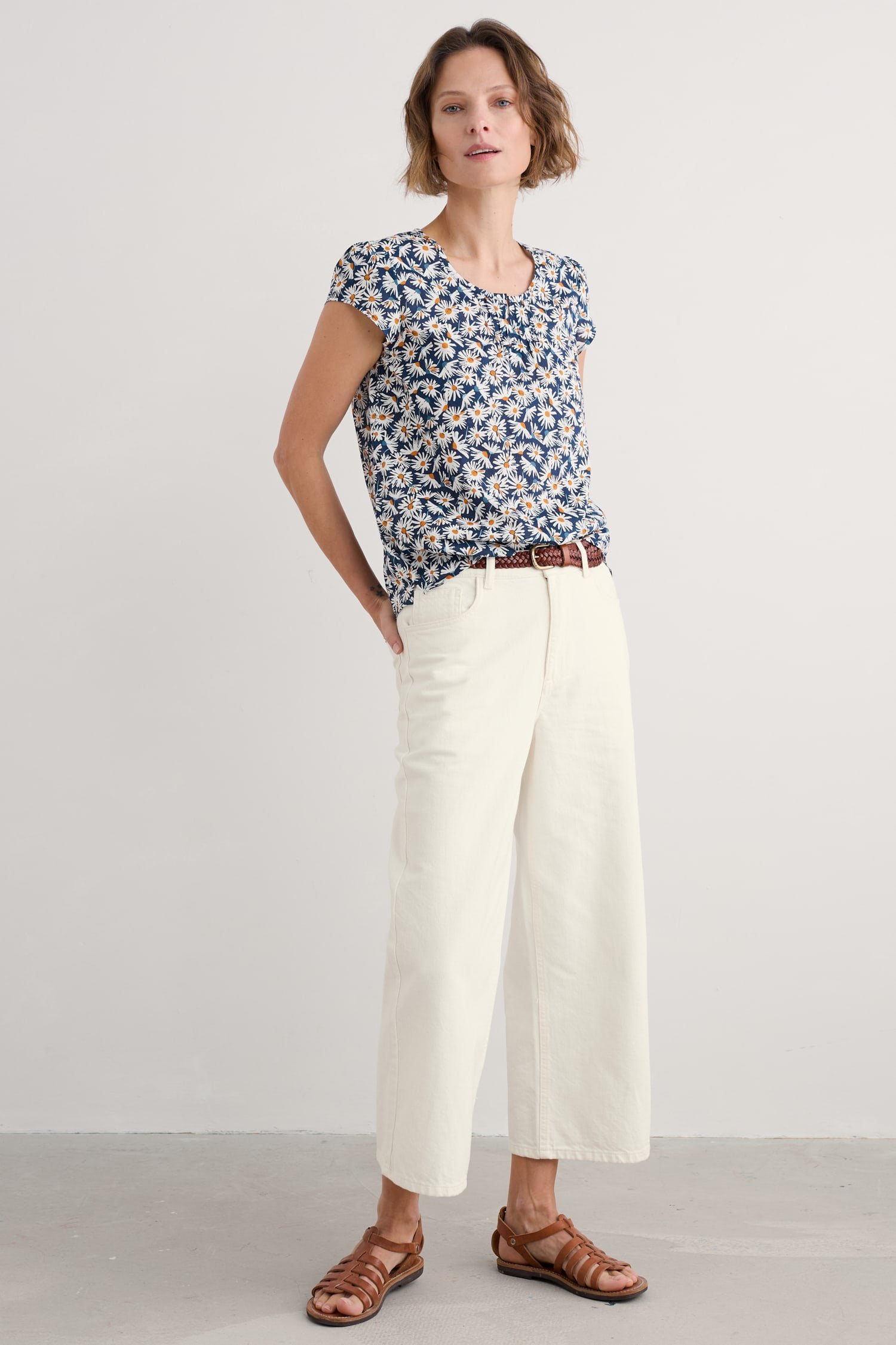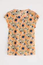 A pretty little top made from soft, cool cotton voile. Our Garden Gate top is semi-fitted with a scoop neck and cap sleeves. It’s finished off with gentle gathers on the front to give it shape, and a keyhole opening with button loop fastening on the back.